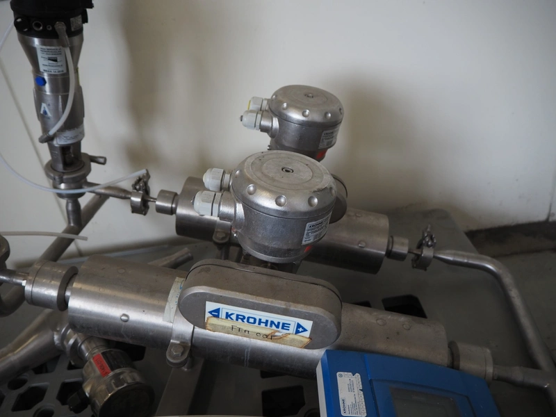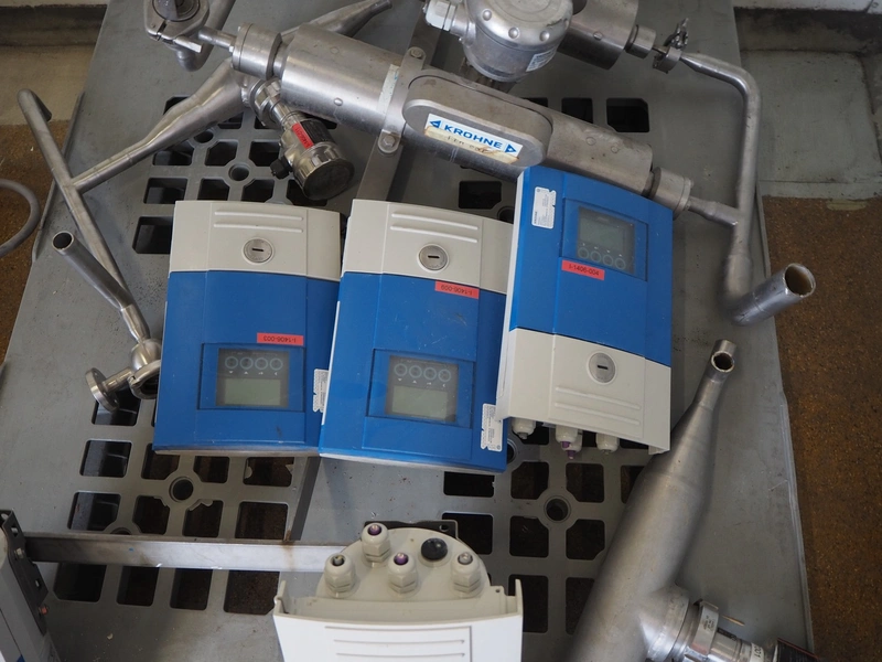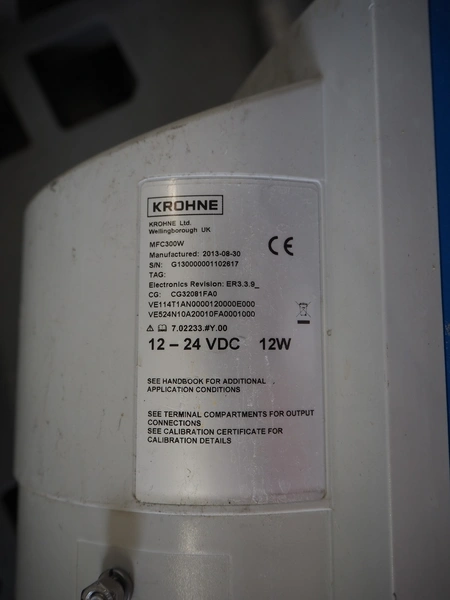 Pallet with Krohne mass flowmeter and 5 Krohne signal converters, type: MFC300W, dimensions pallet: 1200 mm x 1000 mm x 700 mm.