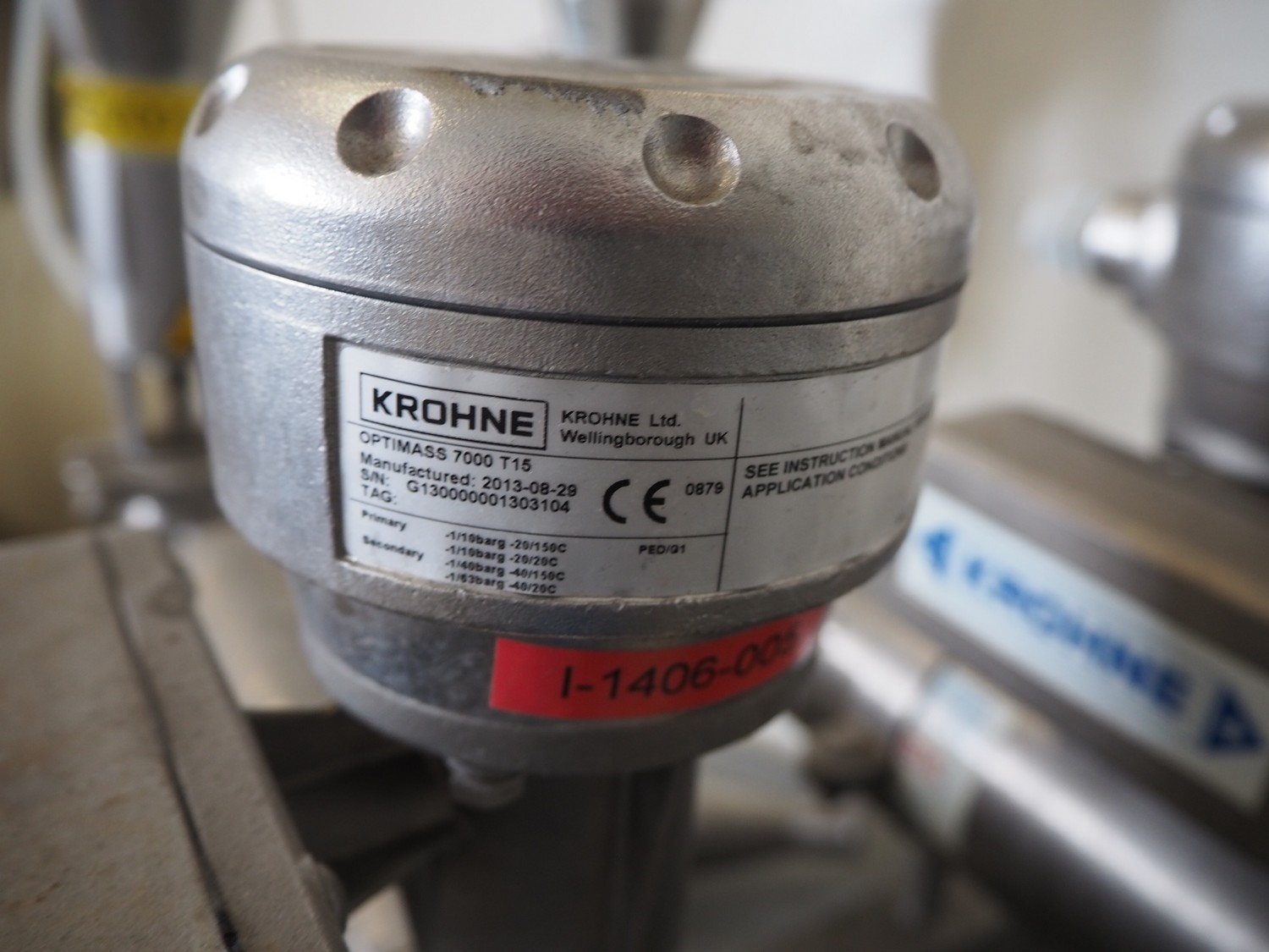 Pallet with Krohne mass flowmeter and 5 Krohne signal converters, type: MFC300W, dimensions pallet: 1200 mm x 1000 mm x 700 mm.