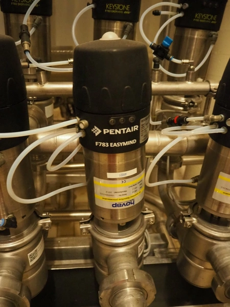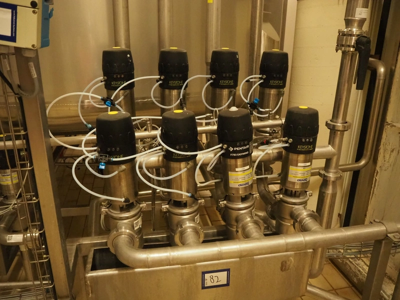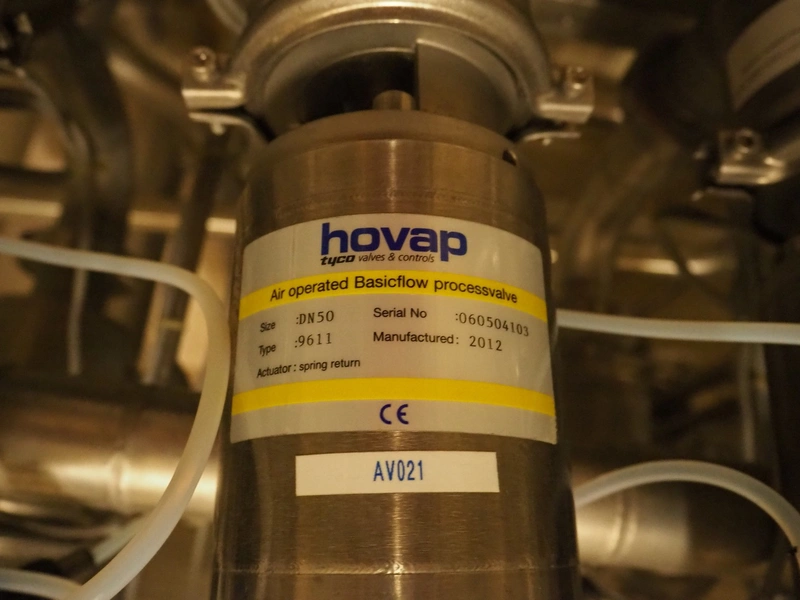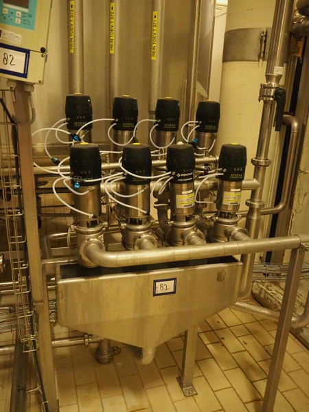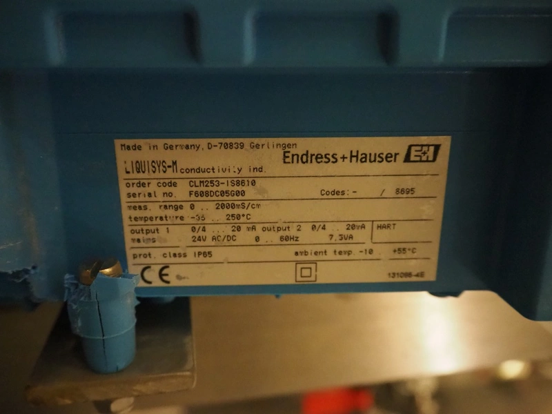 Manifold with 8 Keystone and Hovap valves, type: 9611, Endress+Hauser analogue conductivity sensor with transmitter, type: Indumax H CLS54, Liquisys-M CLM253, s/s switch cabinet, dimensions: 800 mm x 300 mm x 1200 mm and s/s collection tub, dimensions: 950 mm x 750 mm x 1600 mm.