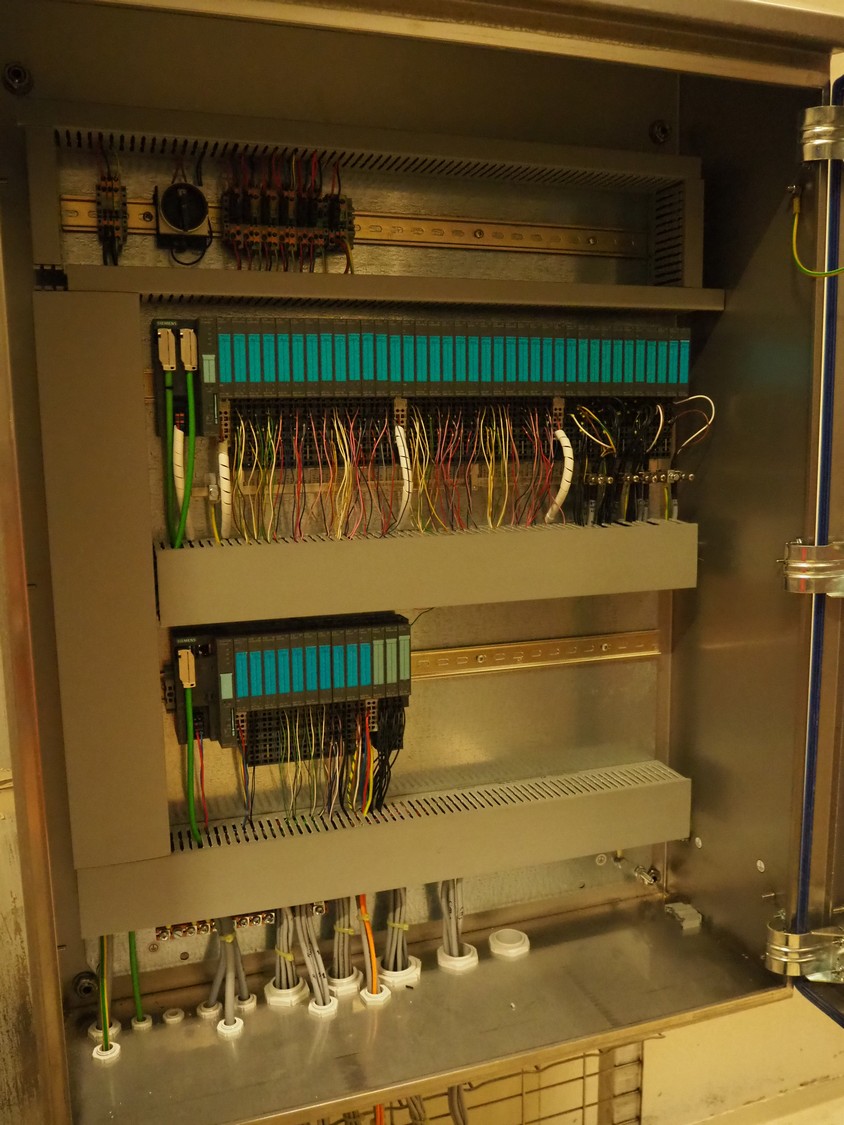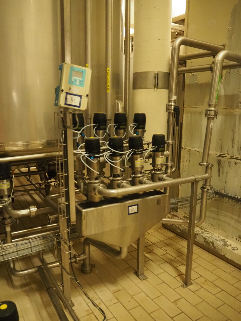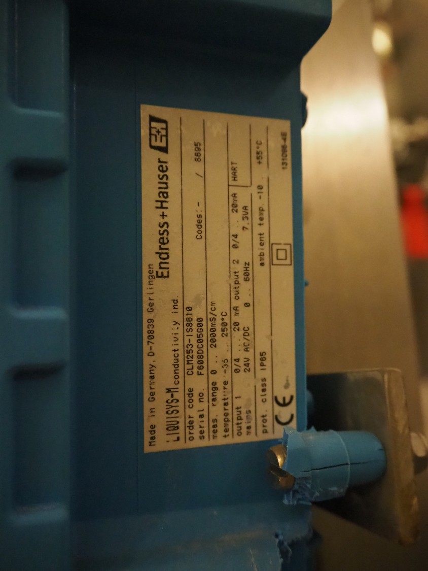 Manifold with 8 Keystone and Hovap valves, type: 9611, Endress+Hauser analogue conductivity sensor with transmitter, type: Indumax H CLS54, Liquisys-M CLM253, s/s switch cabinet, dimensions: 800 mm x 300 mm x 1200 mm and s/s collection tub, dimensions: 950 mm x 750 mm x 1600 mm.