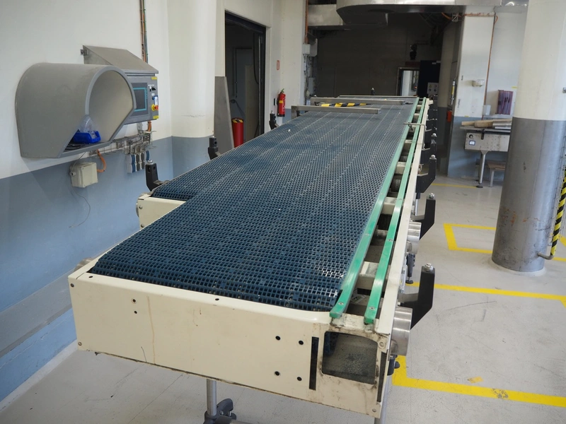 Narviflex transport belt, plastic mesh belt, belt width: 760 mm, total dimensions: 4250 mm x 1250 mm x 1800 mm.
