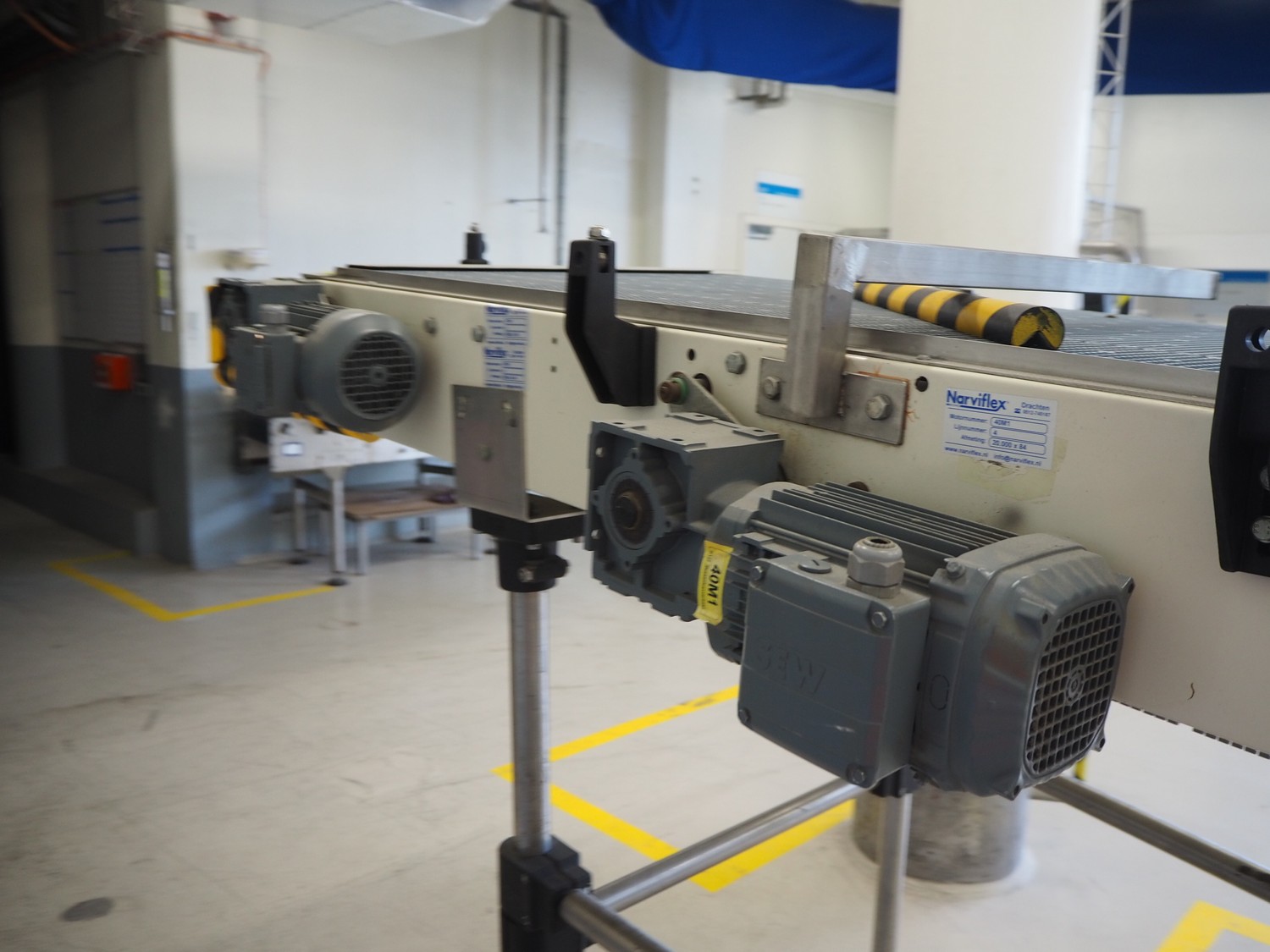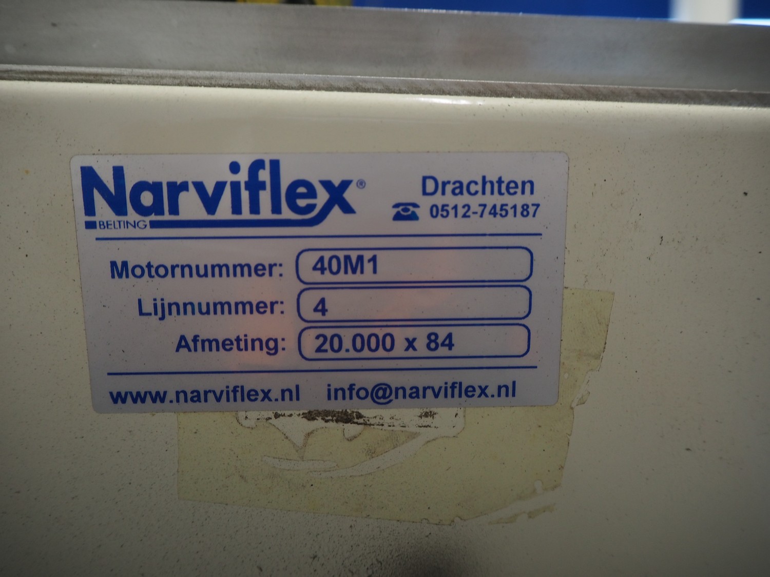 Narviflex transport belt, plastic mesh belt, belt width: 760 mm, total dimensions: 4250 mm x 1250 mm x 1800 mm.