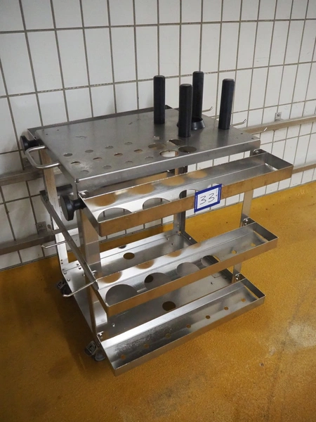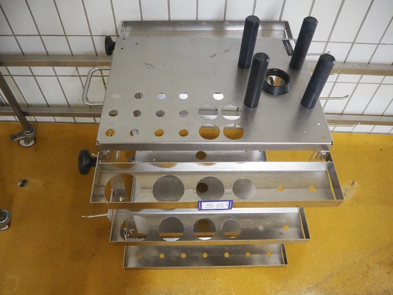 Handtmann s/s trolley for parts, dimensions: 950 mm x 850 mm x 1050 mm.
