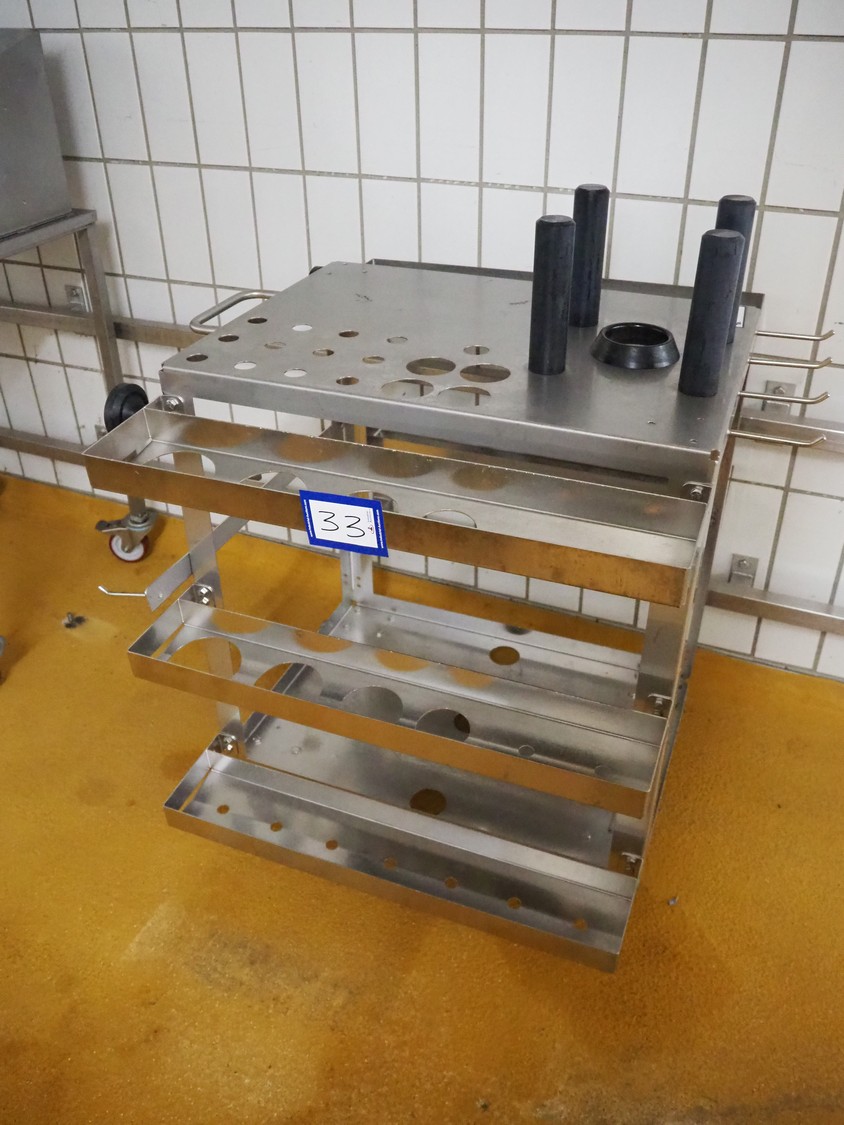 Handtmann s/s trolley for parts, dimensions: 950 mm x 850 mm x 1050 mm.