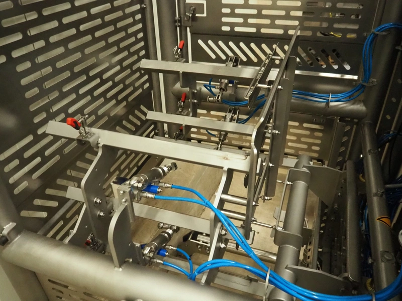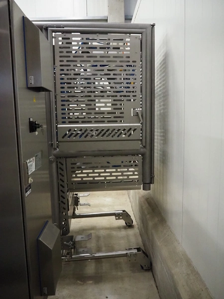 Gröneweg s/s trolley for changing dye's, serial number: AR-JGS-51182414-01, 400 V, 50 Hz, 16 A, clearance: (upper): 380 mm, (lower) (3x) 530 mm, total dimensions: 1800 mm x 1200 mm x 2600 mm.