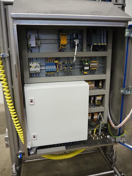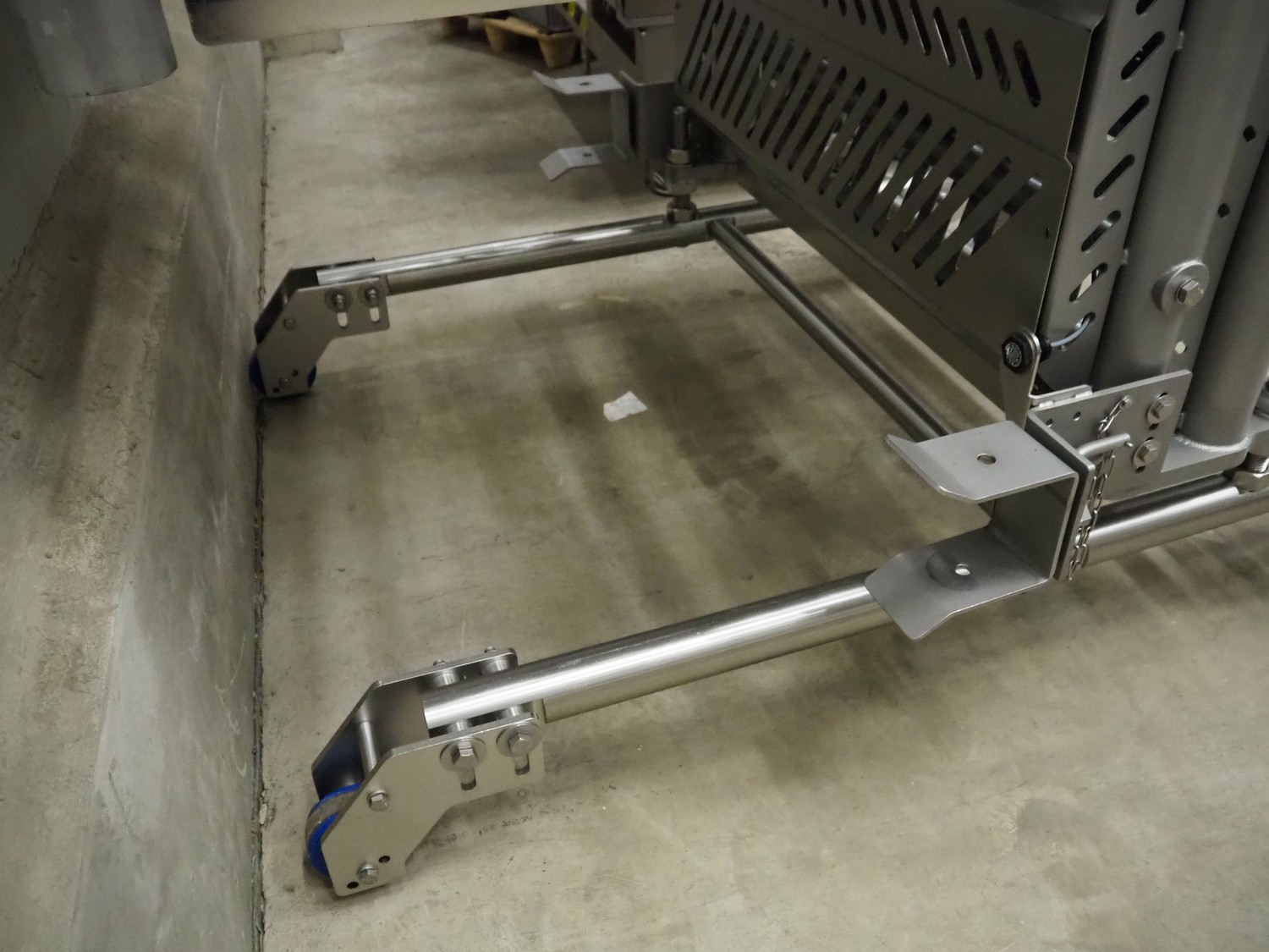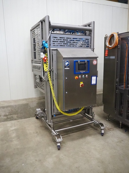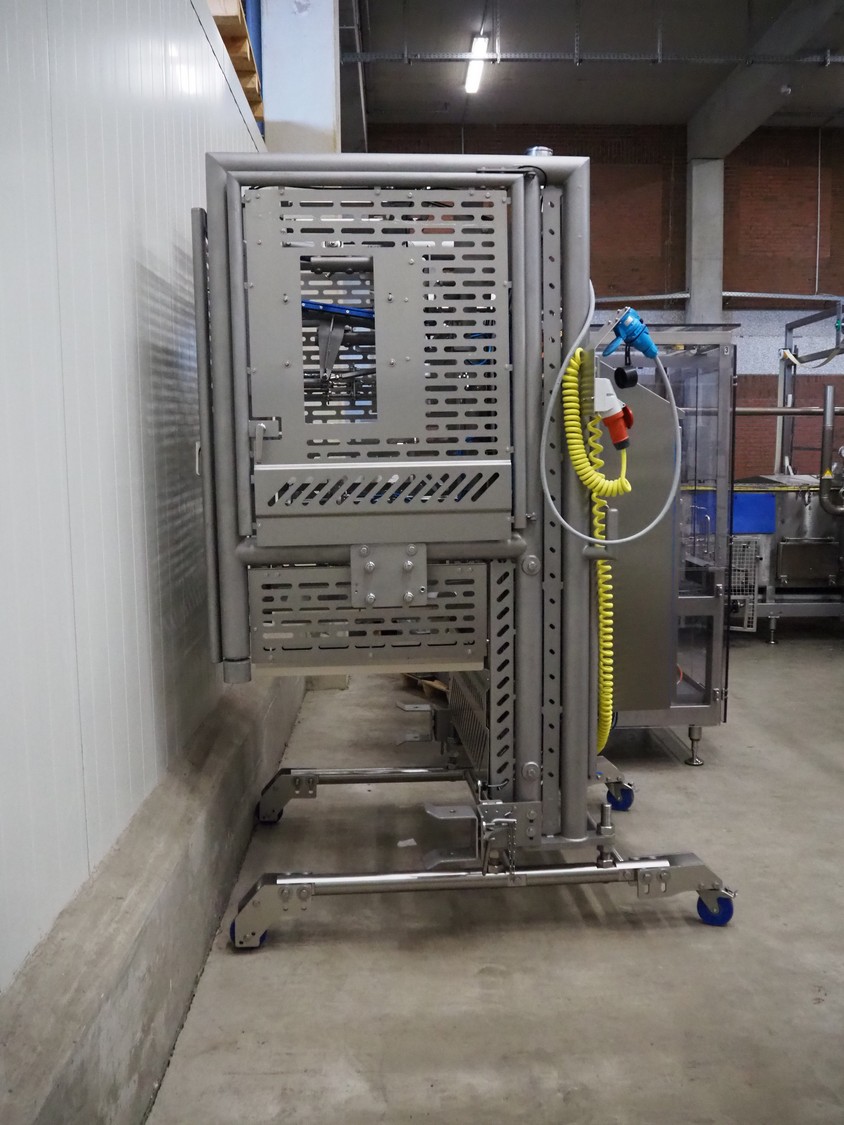 Gröneweg s/s trolley for changing dye's, serial number: AR-JGS-51182414-01, 400 V, 50 Hz, 16 A, clearance: (upper): 380 mm, (lower) (3x) 530 mm, total dimensions: 1800 mm x 1200 mm x 2600 mm.