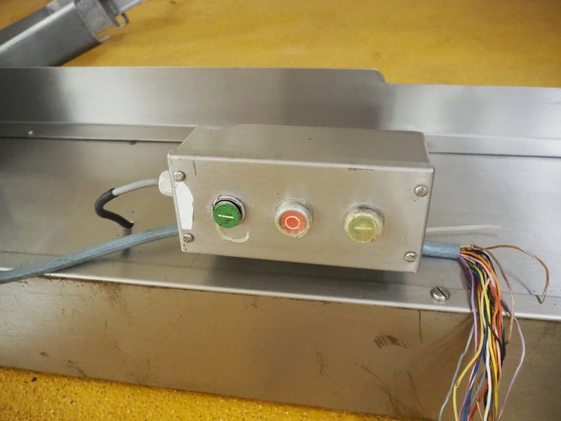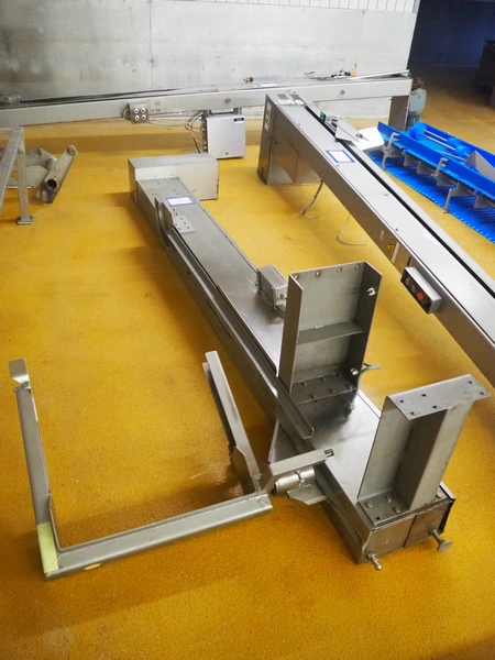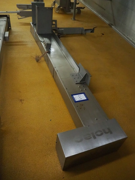 Holac lifter for meat bins, lifting height: 2400 mm, total dimensions: 3300 mm x 1600 mm x 770 mm.