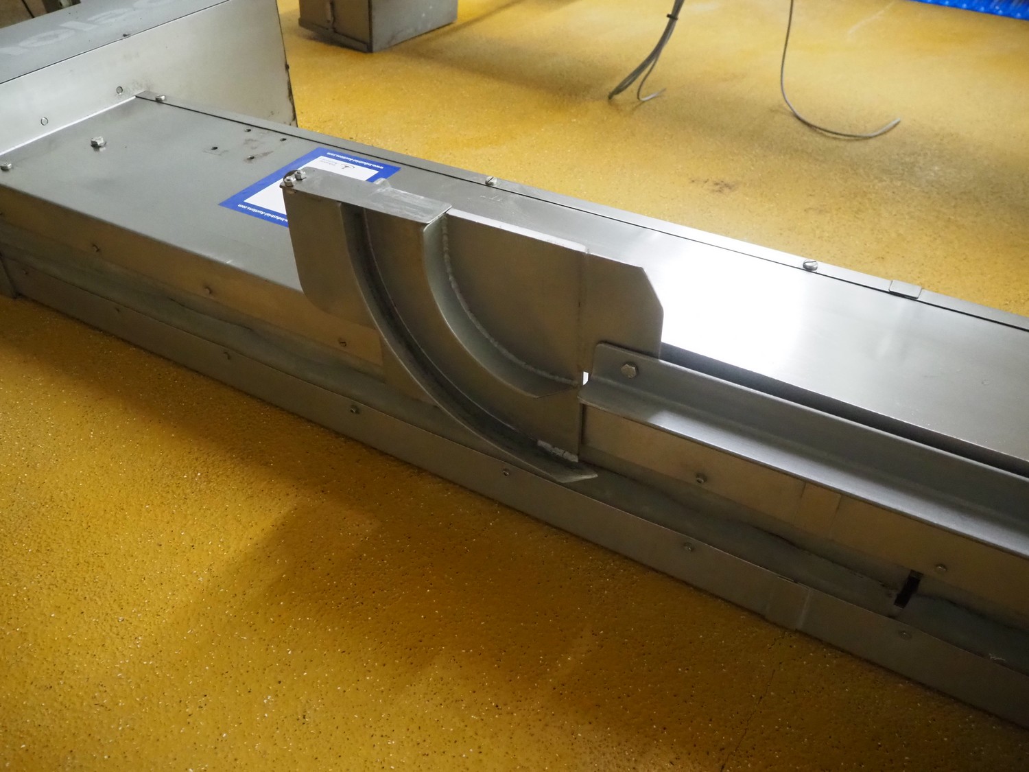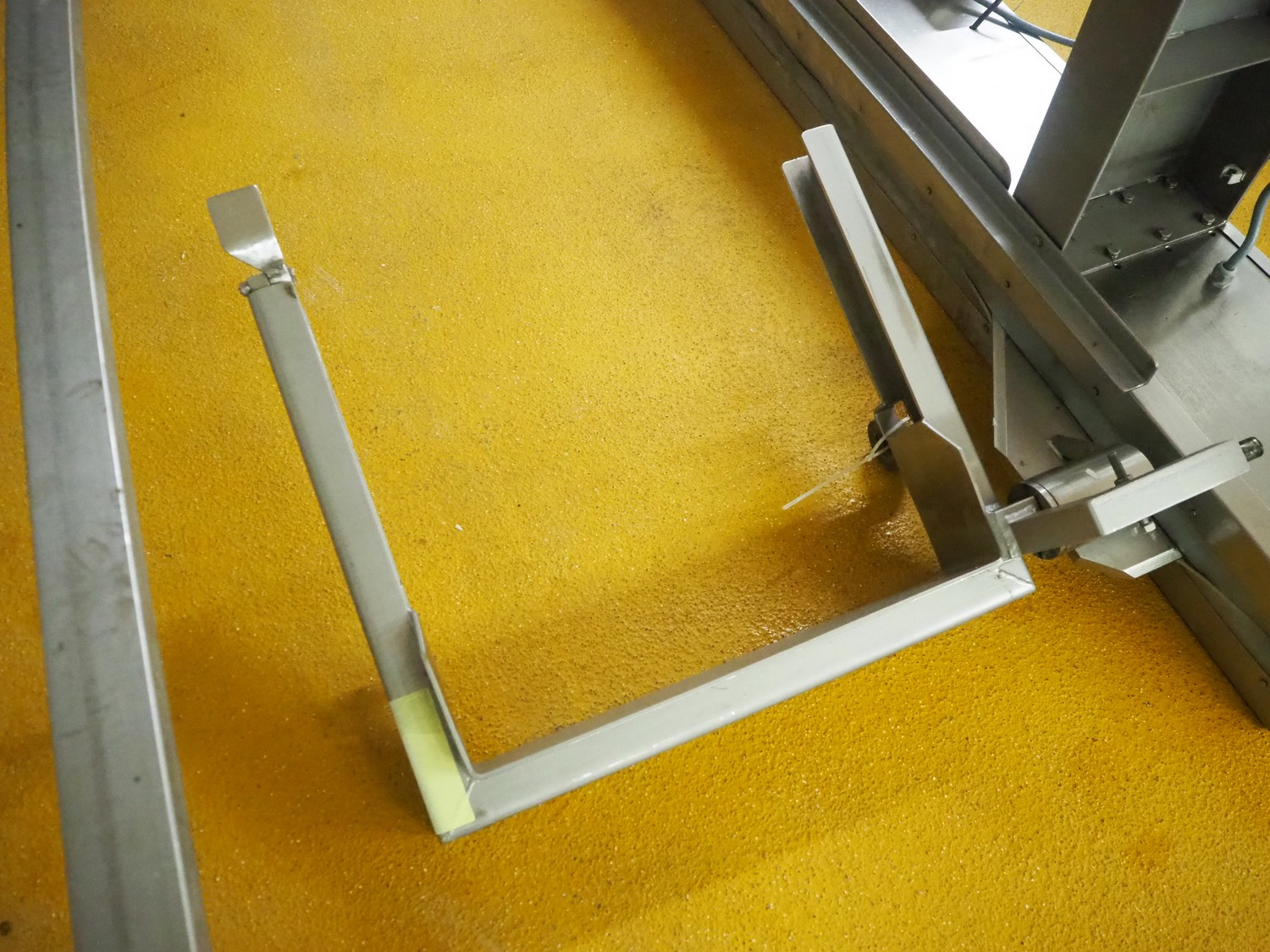 Holac lifter for meat bins, lifting height: 2400 mm, total dimensions: 3300 mm x 1600 mm x 770 mm.
