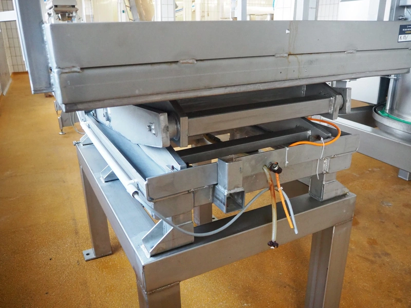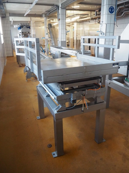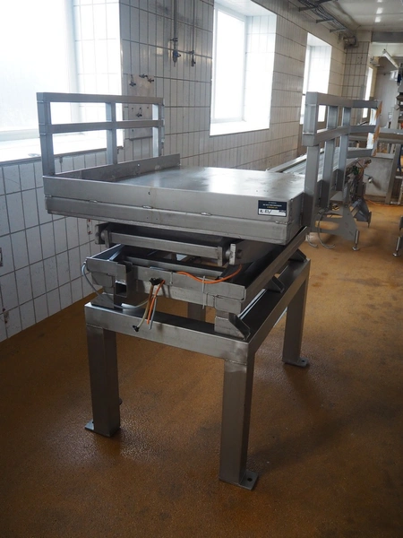 S/s lifting platform with hydraulic unit, dimensions platform: 1050 mm x 1300 mm, total dimensions: 1400 mm x 1400 mm x 1650 mm, dimensions hydraulic unit: 640 mm x 390 mm x 220 mm.
