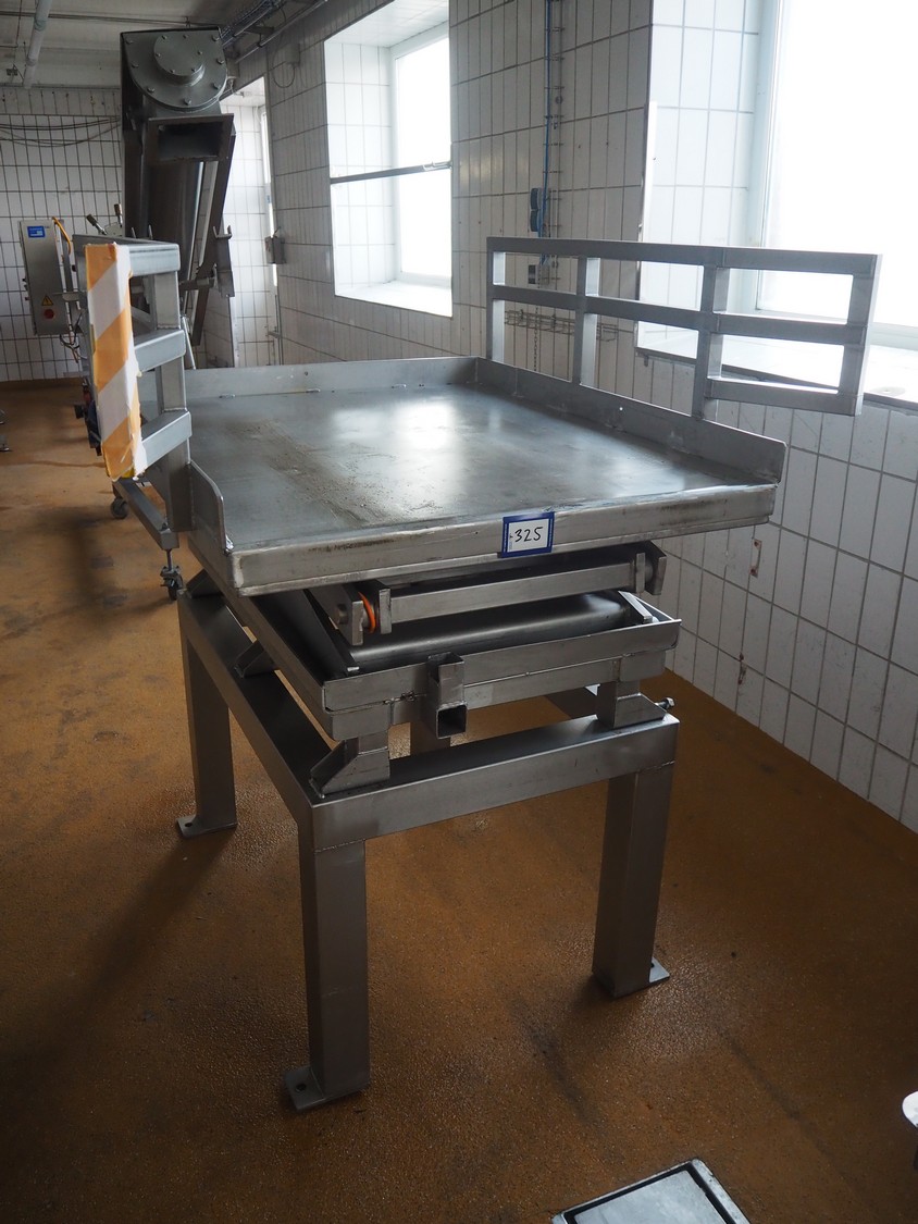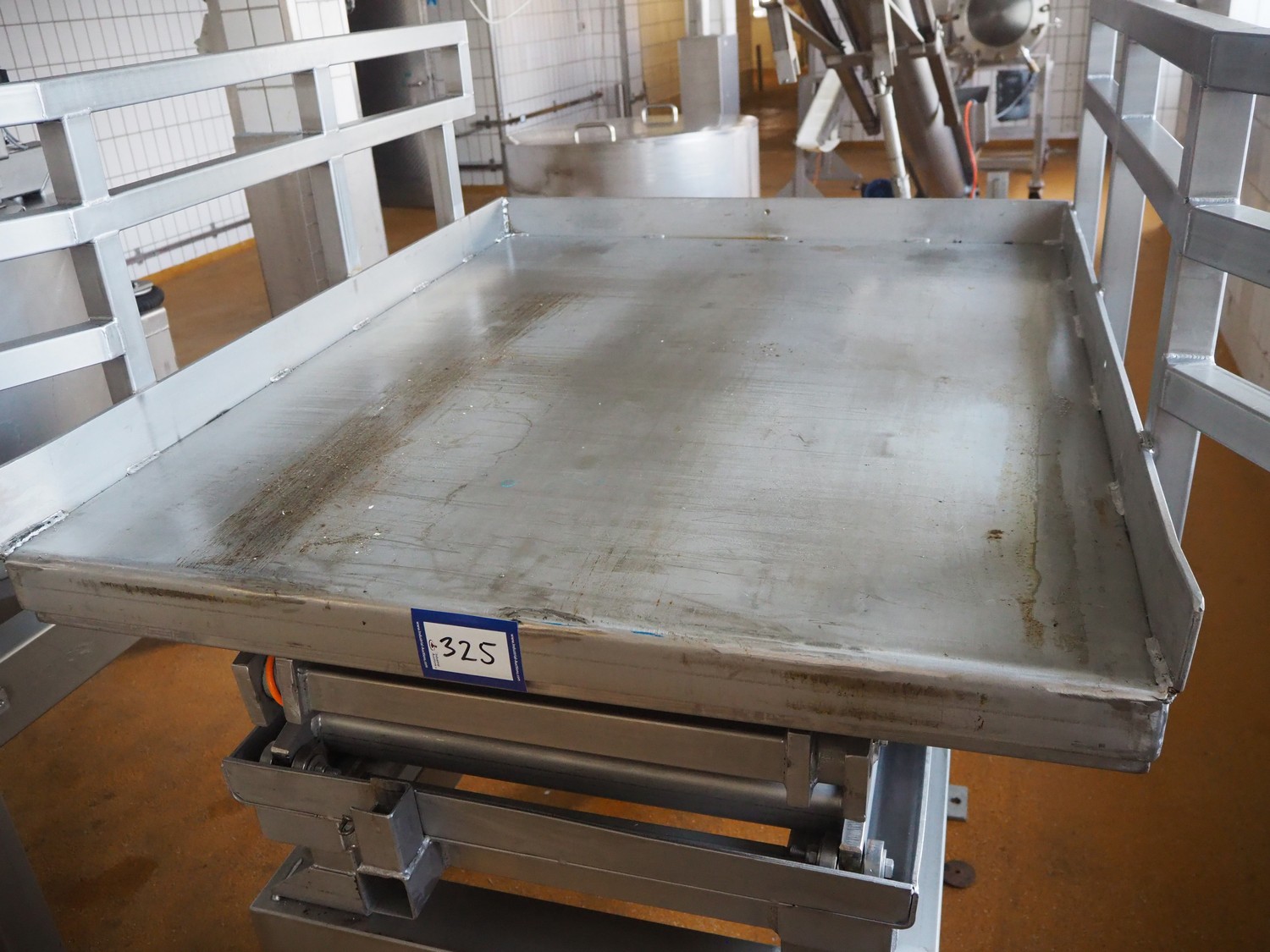 S/s lifting platform with hydraulic unit, dimensions platform: 1050 mm x 1300 mm, total dimensions: 1400 mm x 1400 mm x 1650 mm, dimensions hydraulic unit: 640 mm x 390 mm x 220 mm.