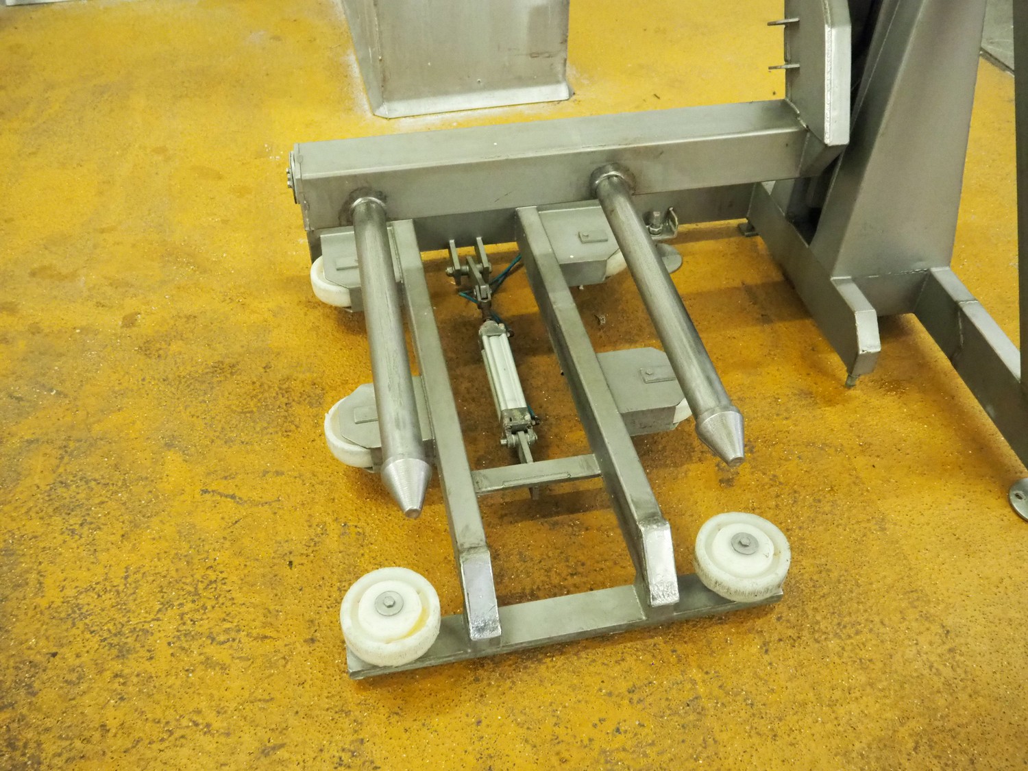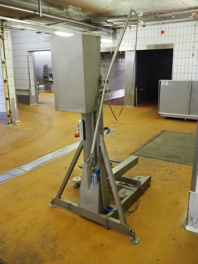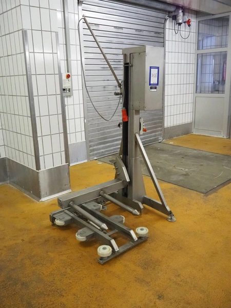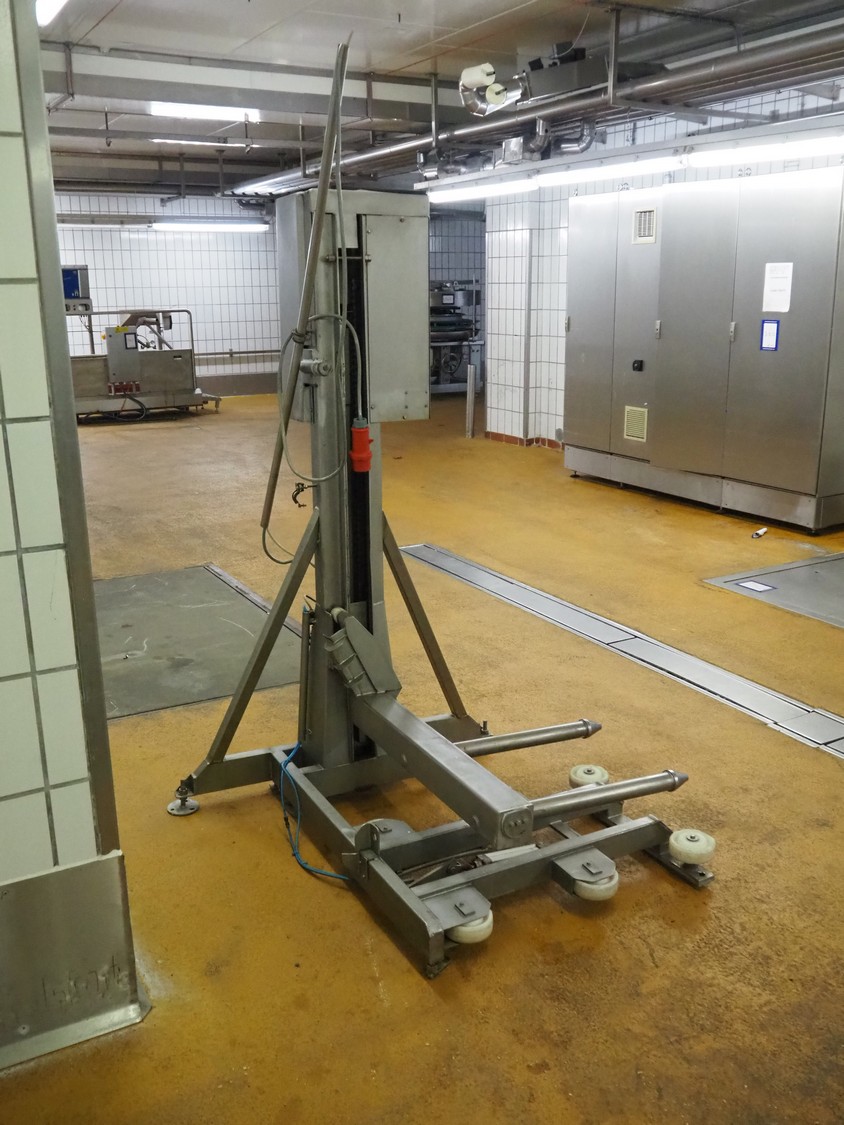 S/s lifter for bowls, lifting height: 1400 mm, total dimensions: 1300 mm x 1200 mm x 1850 mm.