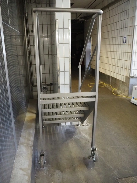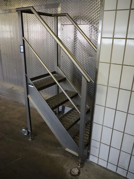 S/s mobile stair, 4 steps, working height: 950 mm, total dimensions: 1100 mm x 830 mm x 1960 mm.