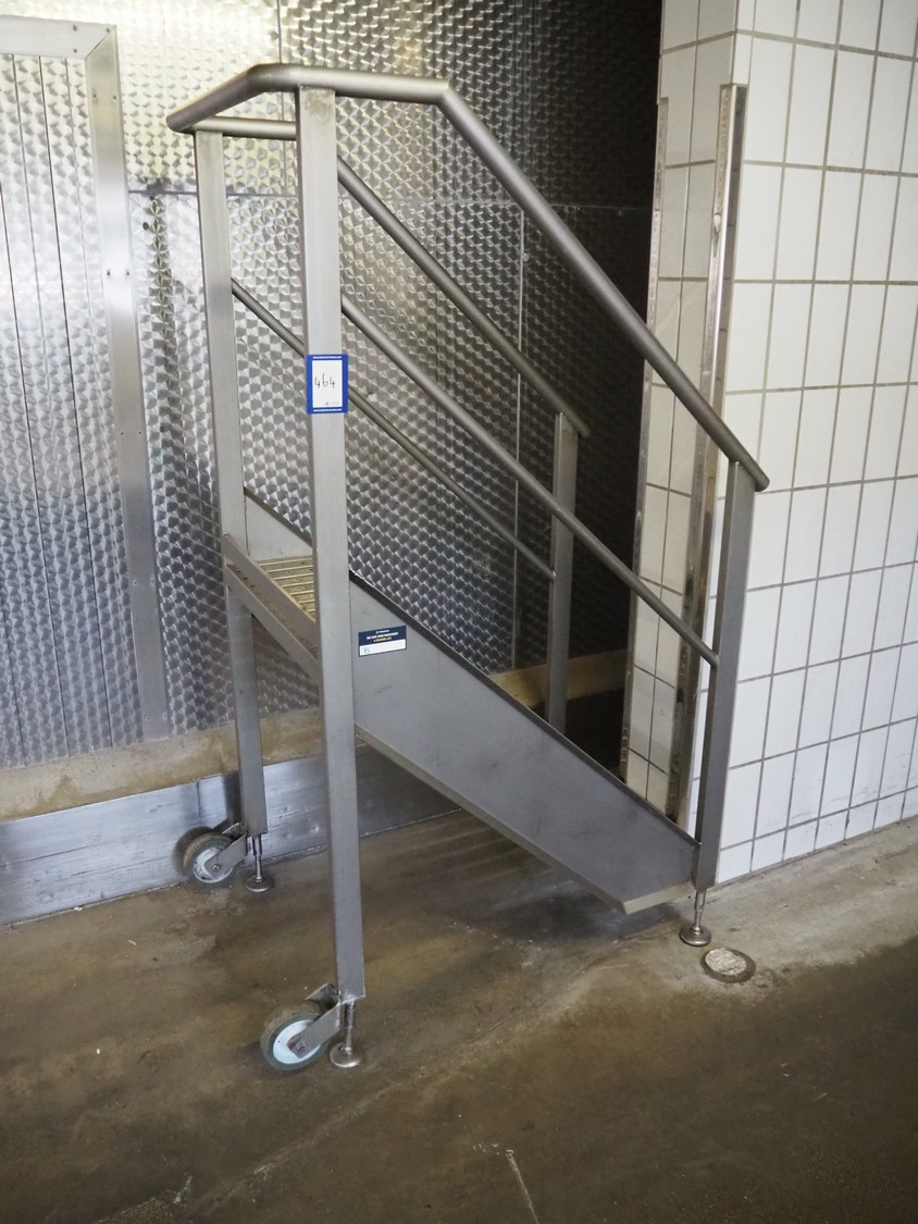 S/s mobile stair, 4 steps, working height: 950 mm, total dimensions: 1100 mm x 830 mm x 1960 mm.