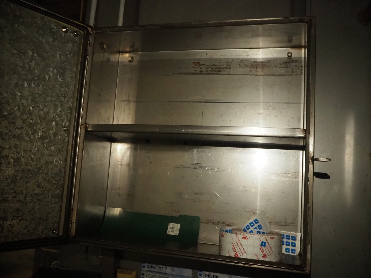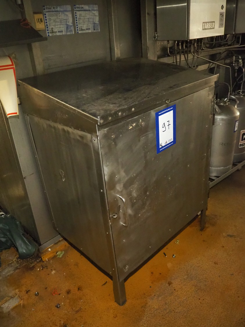 S/s cabinet with writing desk, dimensions: 810 mm x 620 mm x 1120 mm.
