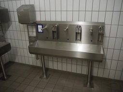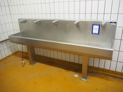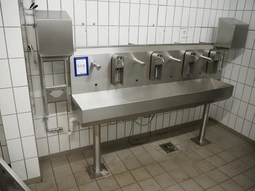 Mohn s/s sink with 4 faucets and soap dispensers and 2 paper dispensers, sensor operated, dimensions: 2600 mm x 600 mm x 1750 mm.13 bidsLot is closed -