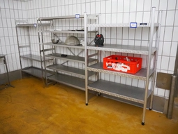 3 s/s racks with kitchen inventory, dimensions: (3x) 1400 mm x 400 mm x 1800 mm.2 bidsLot is closed -