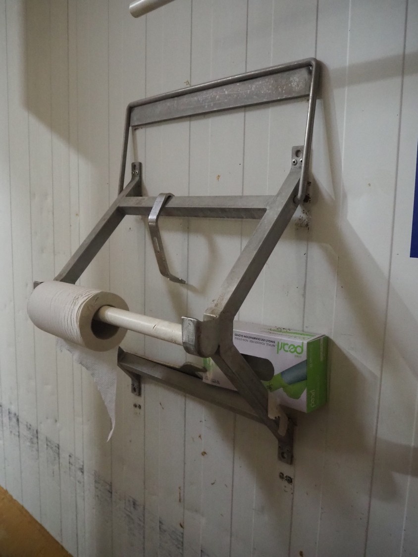 S/s peg, length: 800 mm and s/s paper roll holder, dimensions: 500 mm x 260 mm x 700 mm.