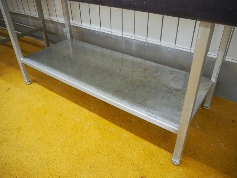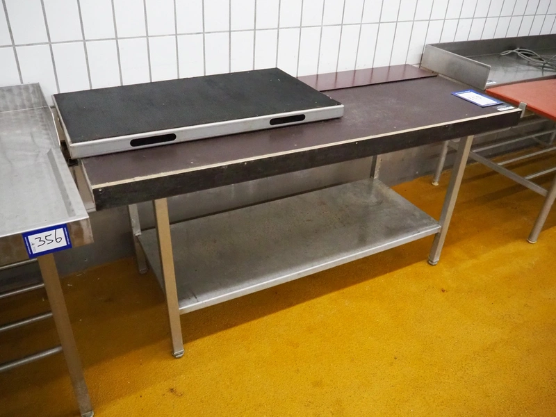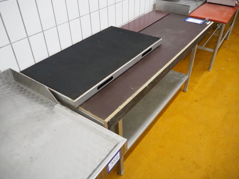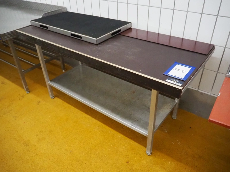 Aluminium table with wooden top, dimensions: 1800 mm x 750 mm x 830 mm.