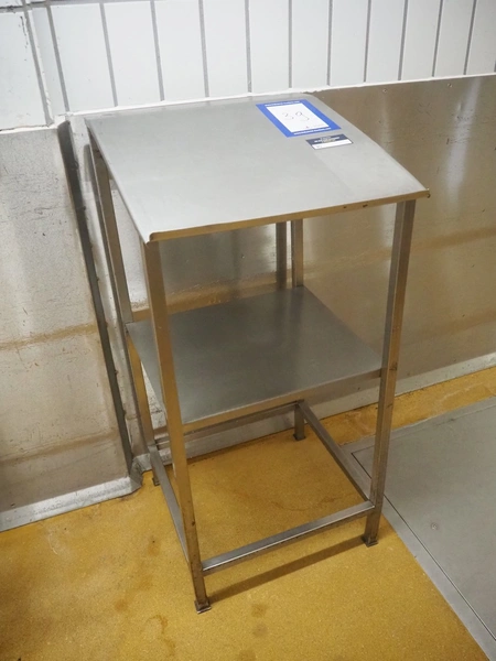 S/s writing desk, dimensions: 600 mm x 600 mm x 1250 mm.