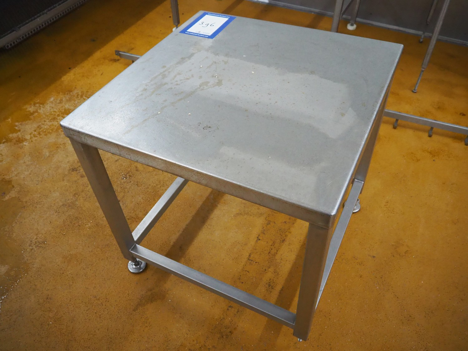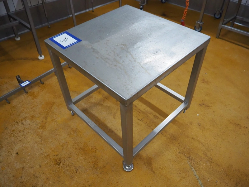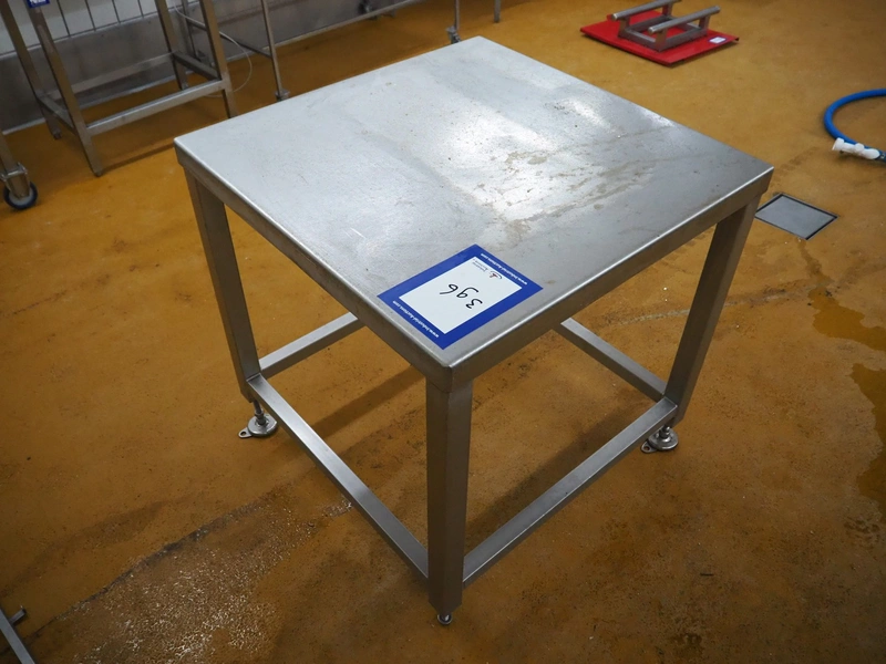 S/s table, dimensions: 800 mm x 800 mm x 830 mm.