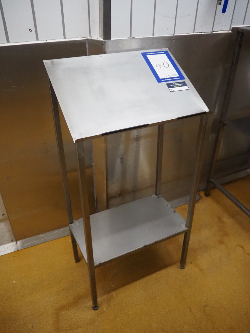 S/s writing desk, dimensions: 600 mm x 350 mm x 1200 mm.