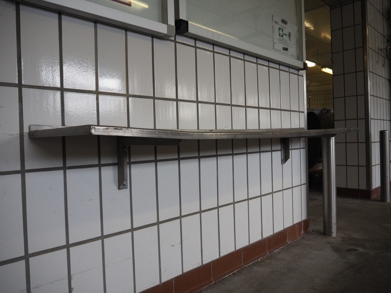 S/s wall mounted table, dimensions: 1800 mm x 360 mm.