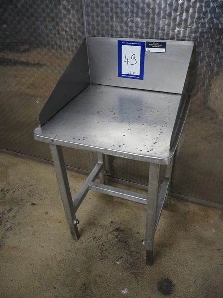 Aluminium table, dimensions: 600 mm x 600 mm x 1050 mm.