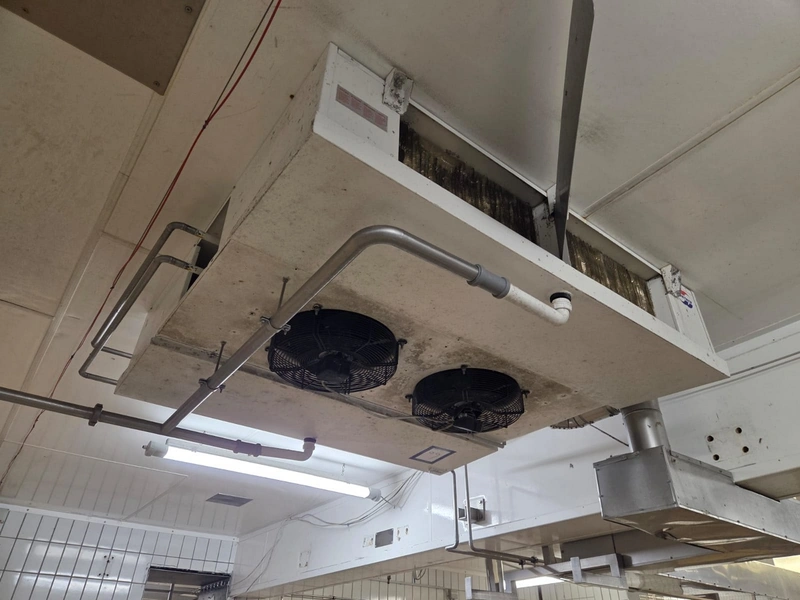 Güntner GmbH & Co. KG evaporator, device type: S-DGN 041A/24/12P, unit serial number: 400/333447702, year of construction: 2009, volume: 11.9+6.6 liter, maximum/minimum permissible pressure: 16 / -1 bar, maximum/minimum permissible temperature: -50 C° / +100 C°, test medium: compressed air, 2 fans, total dimensions: 1600 mm x 1600 mm x 500 mm.