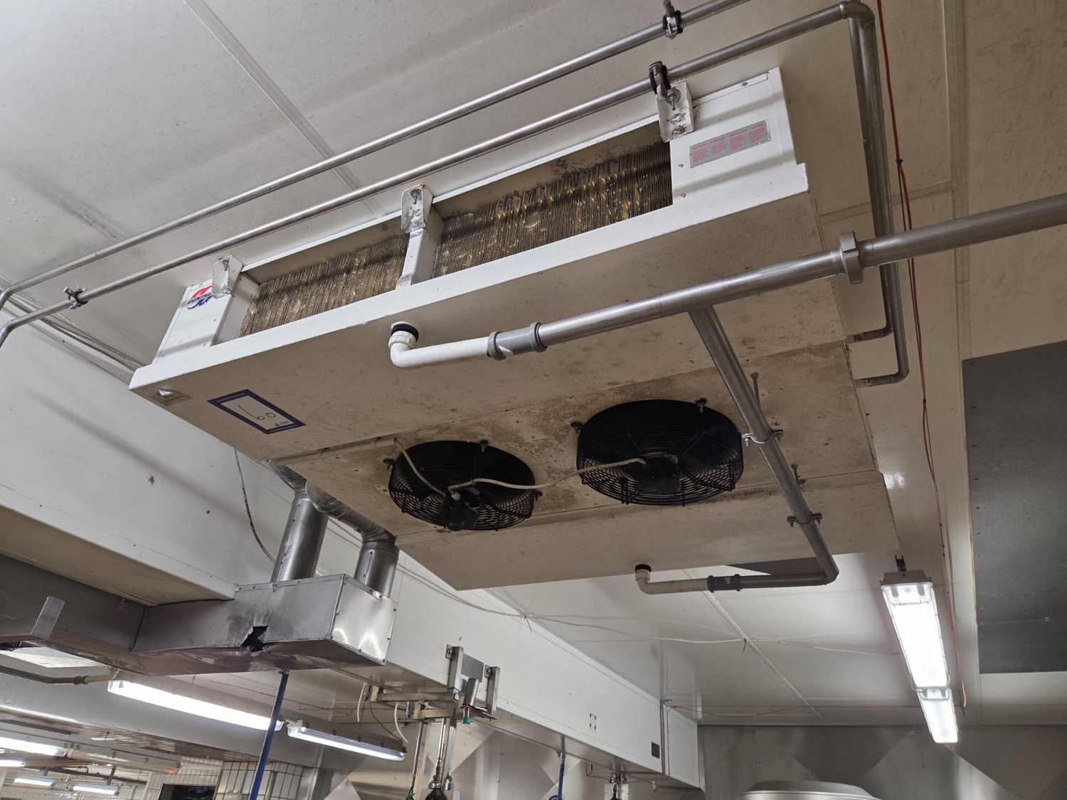 Güntner GmbH & Co. KG evaporator, device type: S-DGN 041A/24/12P, unit serial number: 400/333447702, year of construction: 2009, volume: 11.9+6.6 liter, maximum/minimum permissible pressure: 16 / -1 bar, maximum/minimum permissible temperature: -50 C° / +100 C°, test medium: compressed air, 2 fans, total dimensions: 1600 mm x 1600 mm x 500 mm.