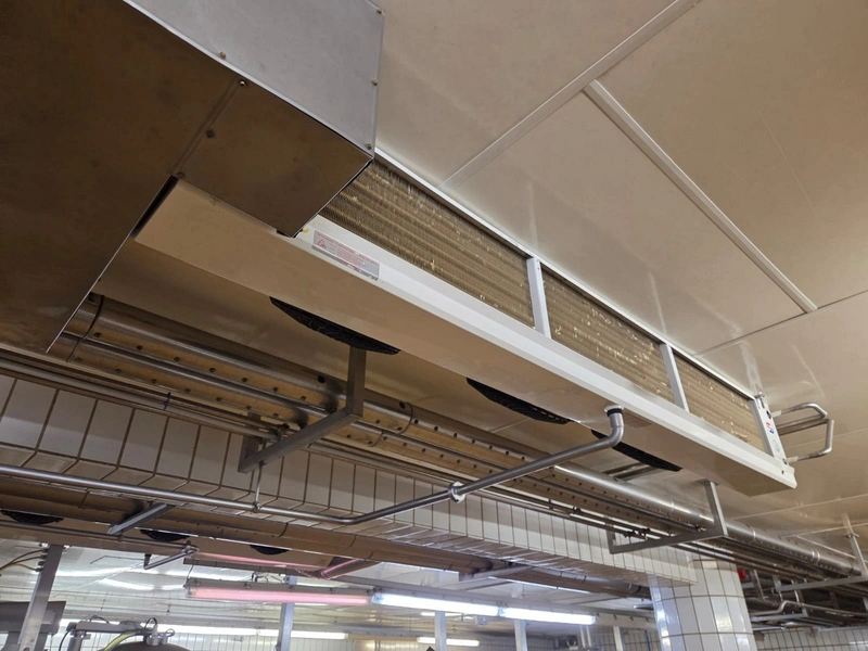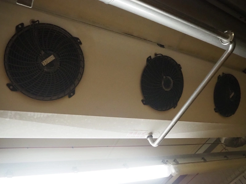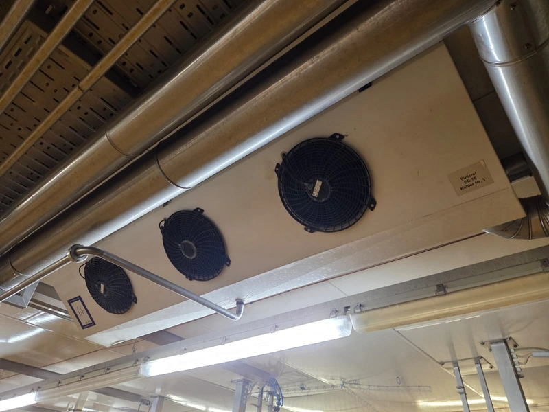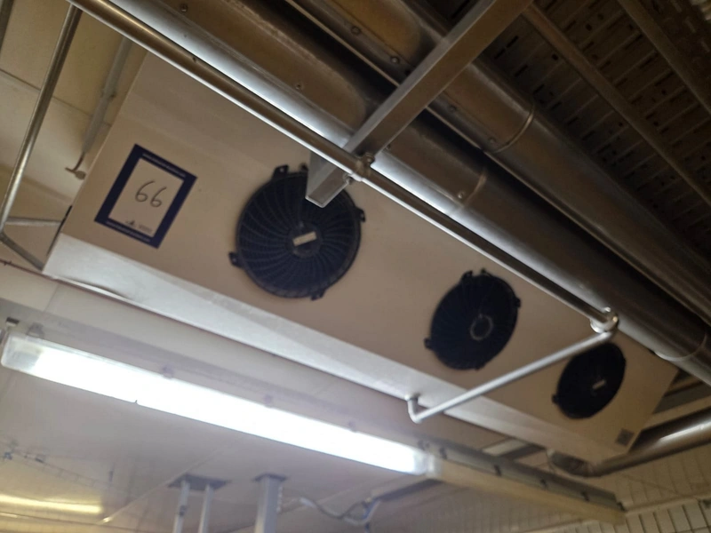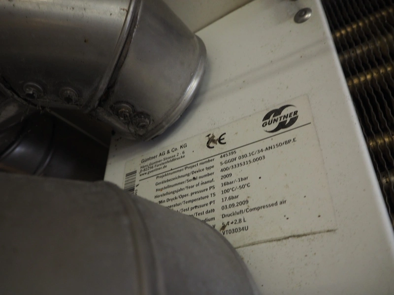 Güntner GmbH & Co. KG evaporator, device type: S-GGDF 030.1C/34-AN150/8P.E, unit serial number: 400/333531503, year of construction: 2009, volume: 5.4+2.8 liter, maximum/minimum permissible pressure: 16 / -1 bar, maximum/minimum permissible temperature: -50 C° / +100 C°, test medium: compressed air, 3 fans, total dimensions: 2400 mm x 500 mm x 350 mm.
