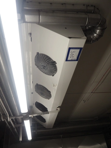 Güntner GmbH & Co. KG evaporator, device type: S-GGDF 030.1C/44-AN150/6P.E, unit serial number: 400/333523602, year of construction: 2009, volume: 7+3.4 liter, maximum/minimum permissible pressure: 16 / -1 bar, maximum/minimum permissible temperature: -50 C° / +100 C°, test medium: compressed air, 4 fans, total dimensions: 3200 mm x 500 mm x 350 mm.