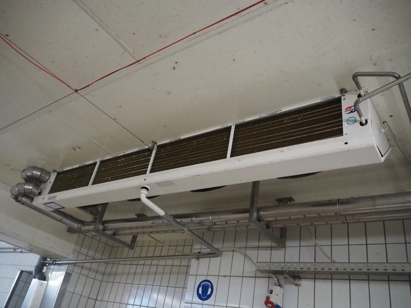 Güntner GmbH & Co. KG evaporator, device type: S-GGDF 030.1C/44-AN150/6P.E, unit serial number: 400/333523701, year of construction: 2009, volume: 7+3.4 liter, maximum/minimum permissible pressure: 16 / -1 bar, maximum/minimum permissible temperature: -50 C° / +100 C°, test medium: compressed air, 4 fans, total dimensions: 3200 mm x 500 mm x 350 mm.