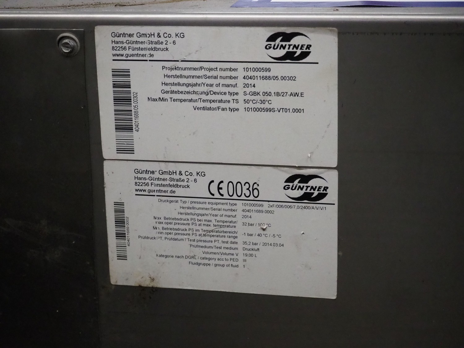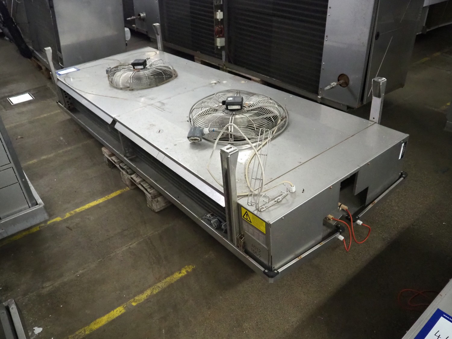 Güntner GmbH & Co. KG evaporator, type: S-GBK 050.1B/27-AW.E, serial number: 404011688/05.00302, year of construction: 2014, maximum / minimum temperature, 50°C / -30°C, 2 fans, fan type: 101000599S-VT01.0001, dimensions: 3100 mm x 1100 mm x 600 mm.