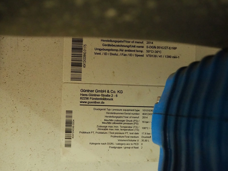 3 Güntner GmbH & Co. KG evaporators, type: (2x) S-DGN 046A/34 / (1x) S-DGN 051C/27-E/16P, Year of construction: (2x) 2000 / (1x) 2014, dimensions: 3250 mm x 1600 mm x 1600 mm.