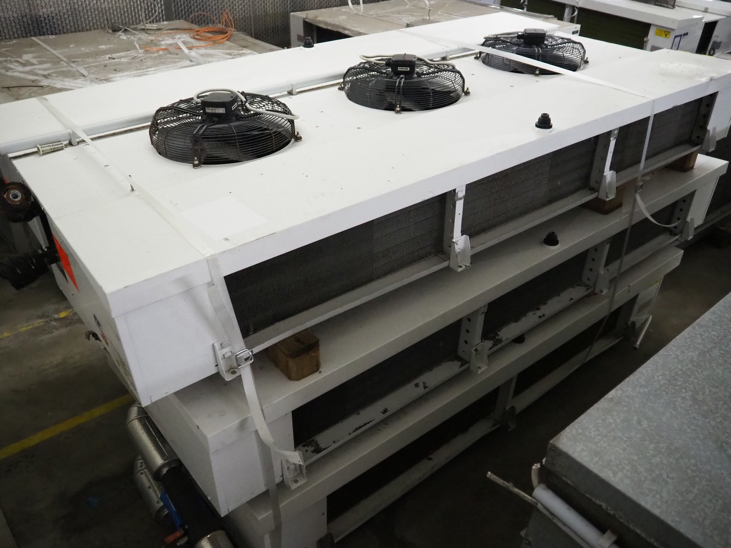 3 Güntner GmbH & Co. KG evaporators, type: (2x) S-DGN 046A/34 / (1x) S-DGN 051C/27-E/16P, Year of construction: (2x) 2000 / (1x) 2014, dimensions: 3250 mm x 1600 mm x 1600 mm.