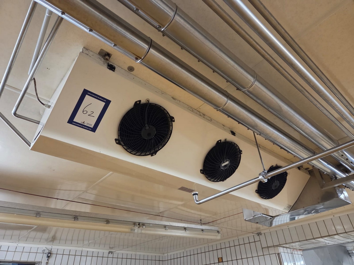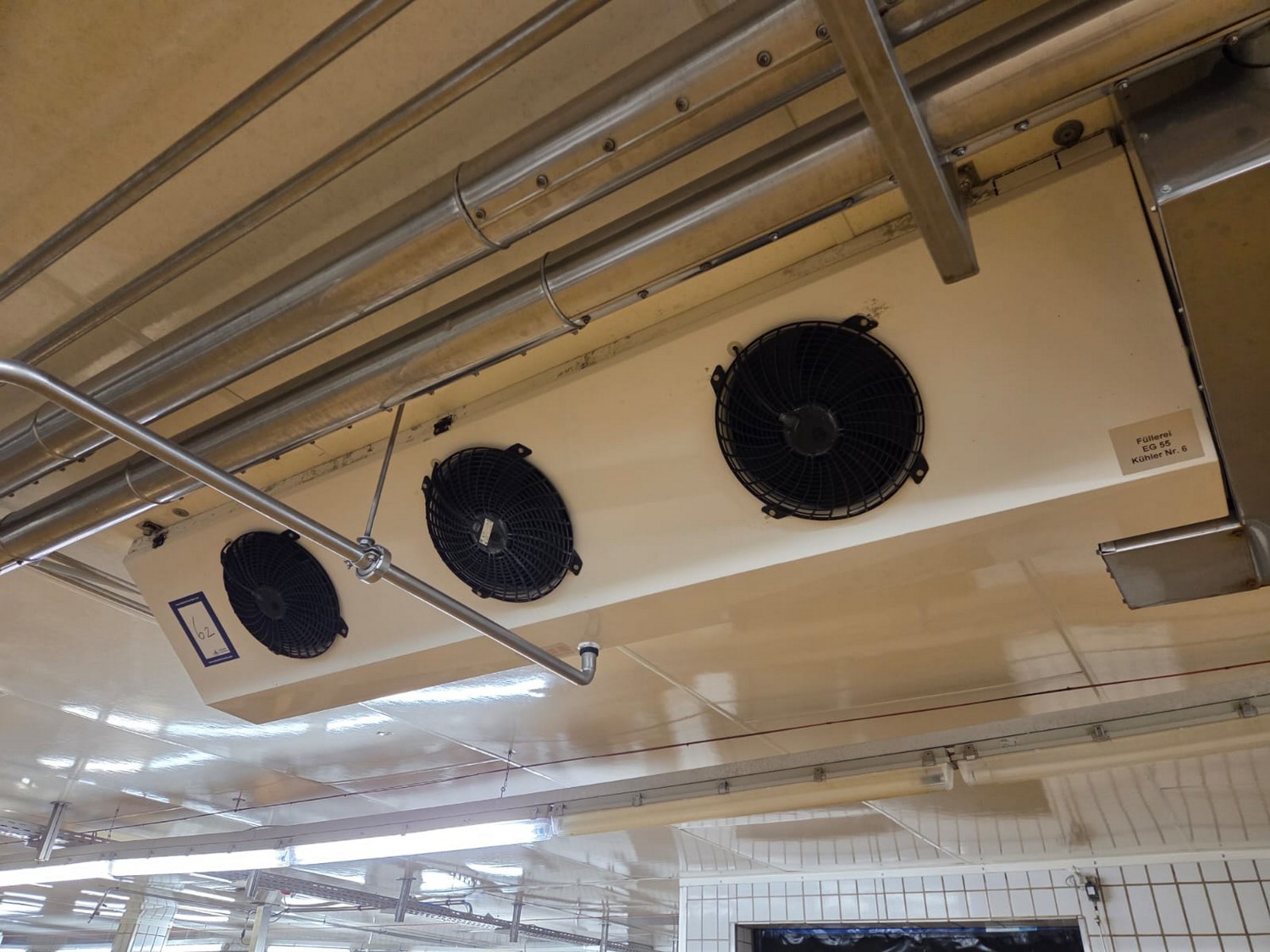 Güntner GmbH & Co. KG evaporator, device type: S-GGDF 030.1C/34-AN150/8P.E, year of construction: 2009, volume: 5.4+2.8 liter, maximum/minimum permissible pressure: 16 / -1 bar, maximum/minimum permissible temperature: -50 C° / +100 C°, test medium: compressed air, 3 fans, total dimensions: 2400 mm x 500 mm x 350 mm.