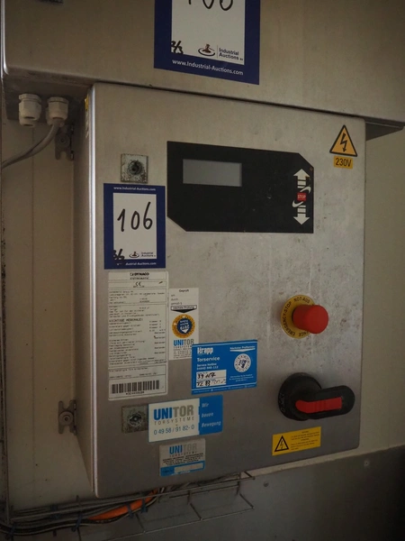 Dynaco Entrematic electric high speed shutter door, door type: D-313 LF, serial number: DE44886B, year of construction: 2016, dimensions door: 1910 mm x 2440 mm, 2 switch cabinets, dimensions: 400 mm x 220 mm x 490 mm and 600 mm x 220 mm x 600 mm.