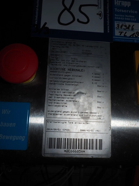 Dynaco Entrematic electric high speed shutter door, type: D-311, serial number: DE66685A, year of construction: 11-2020, dimensions door: 2500 mm x 2410 mm.