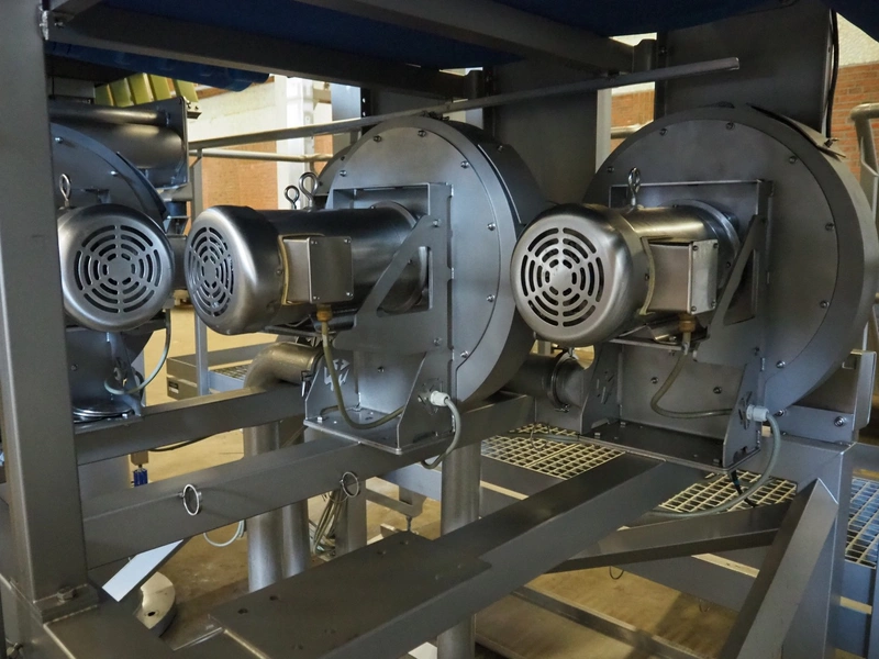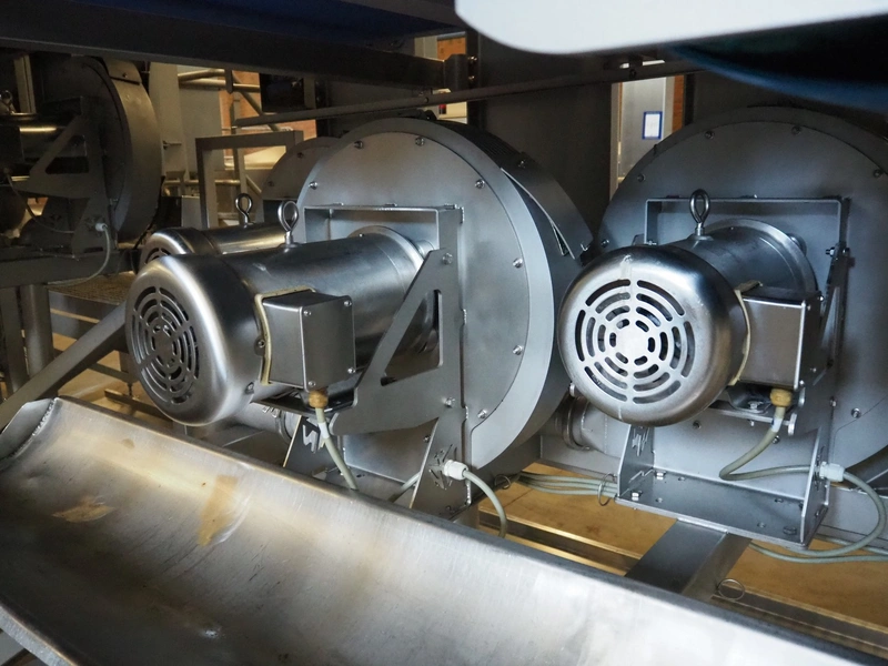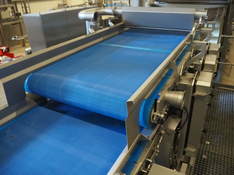 Drying belt, 6 blowers, plastic mesh belt, belt width: (2x) 920 mm, plastic belt, belt width: 920 mm, working width: 920 mm, total dimensions: 6600 mm x 3300 mm x 2550 mm.