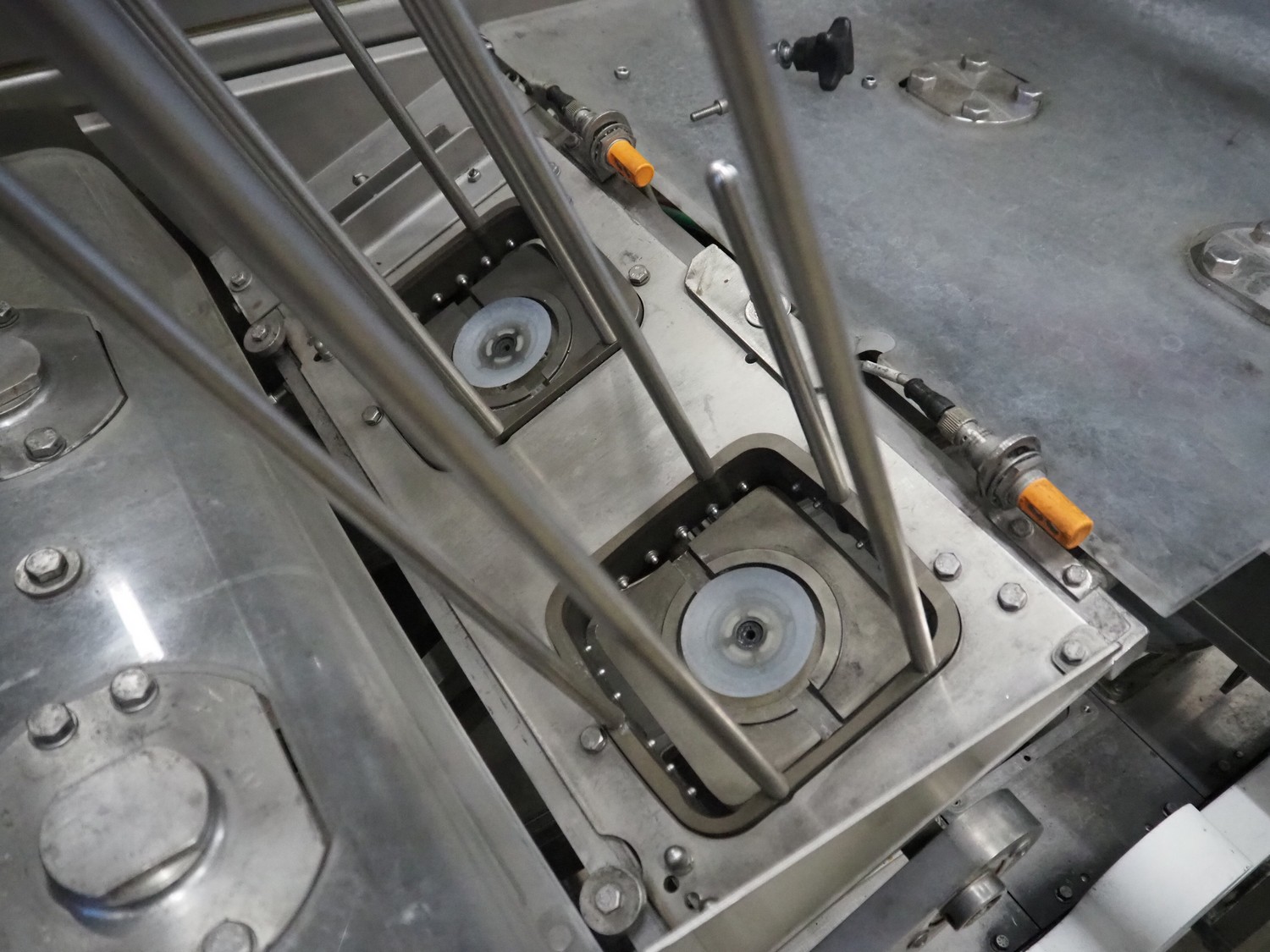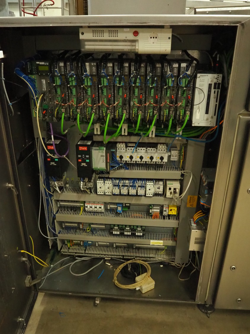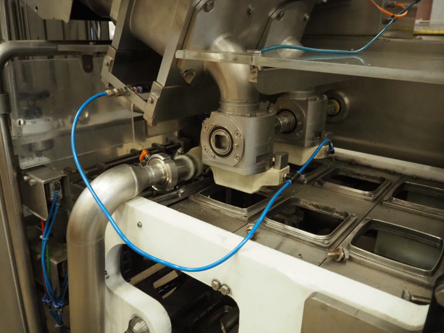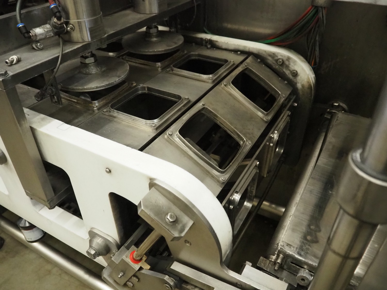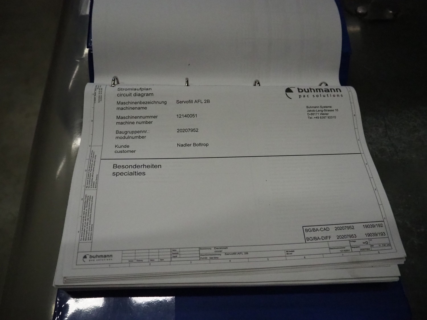 Buhmann Pac Solutions tray filling and closing machine, type: AFL2B, serial number: 12.140.051, year of construction: 2008, 400 V, 3 Ph, 10 A, 5 kW, Hilge pump, dimensions dye: 120 mm x 120 mm, belt width: 450 mm, platform height: 2230 mm, total dimensions: 4850 mm x 4100 mm x 3400 mm. With pallet with parts.