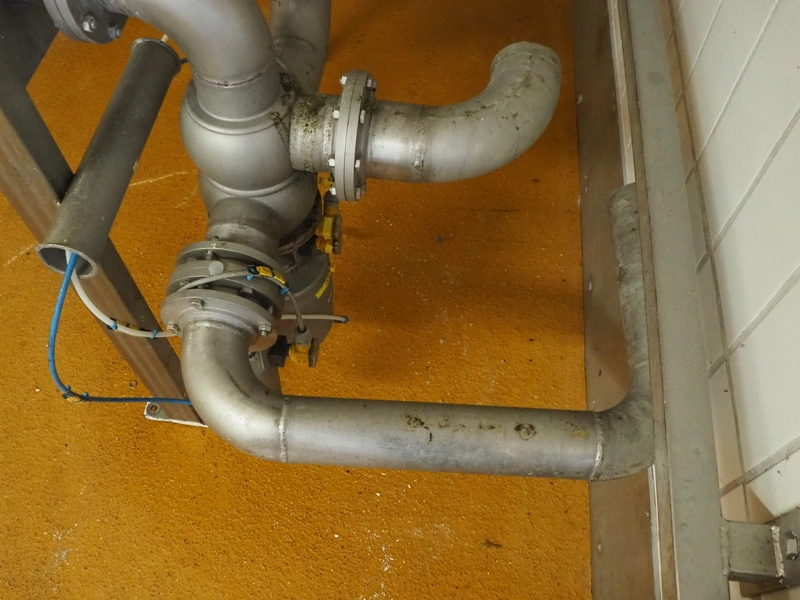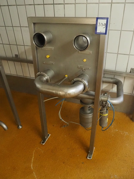 APV flow plate with 2 APV valves, inside diameter pipings: 80 mm, dimensions flow plate: 580 mm x 1290 mm.