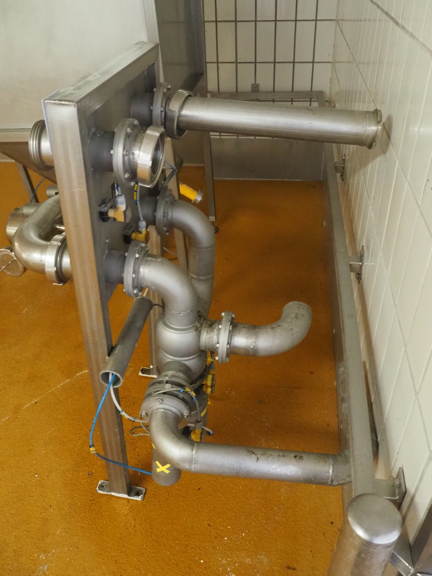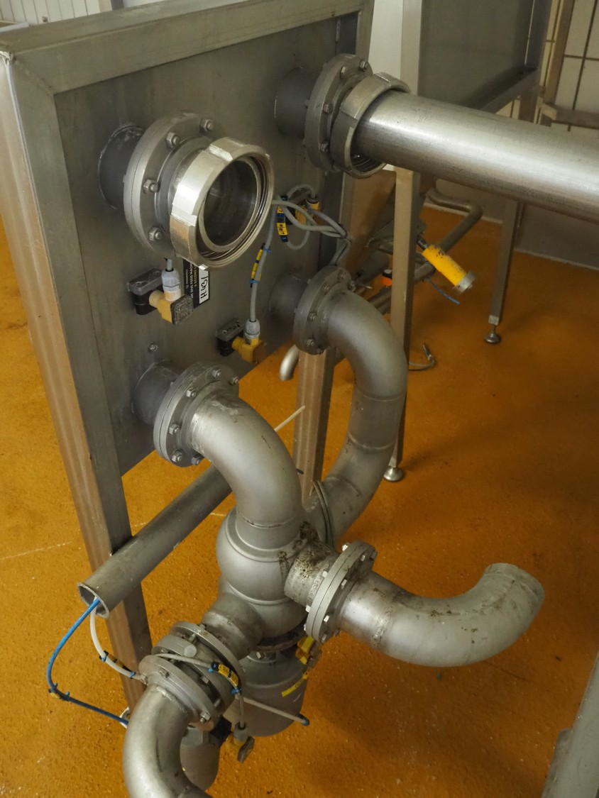 APV flow plate with 2 APV valves, inside diameter pipings: 80 mm, dimensions flow plate: 580 mm x 1290 mm.
