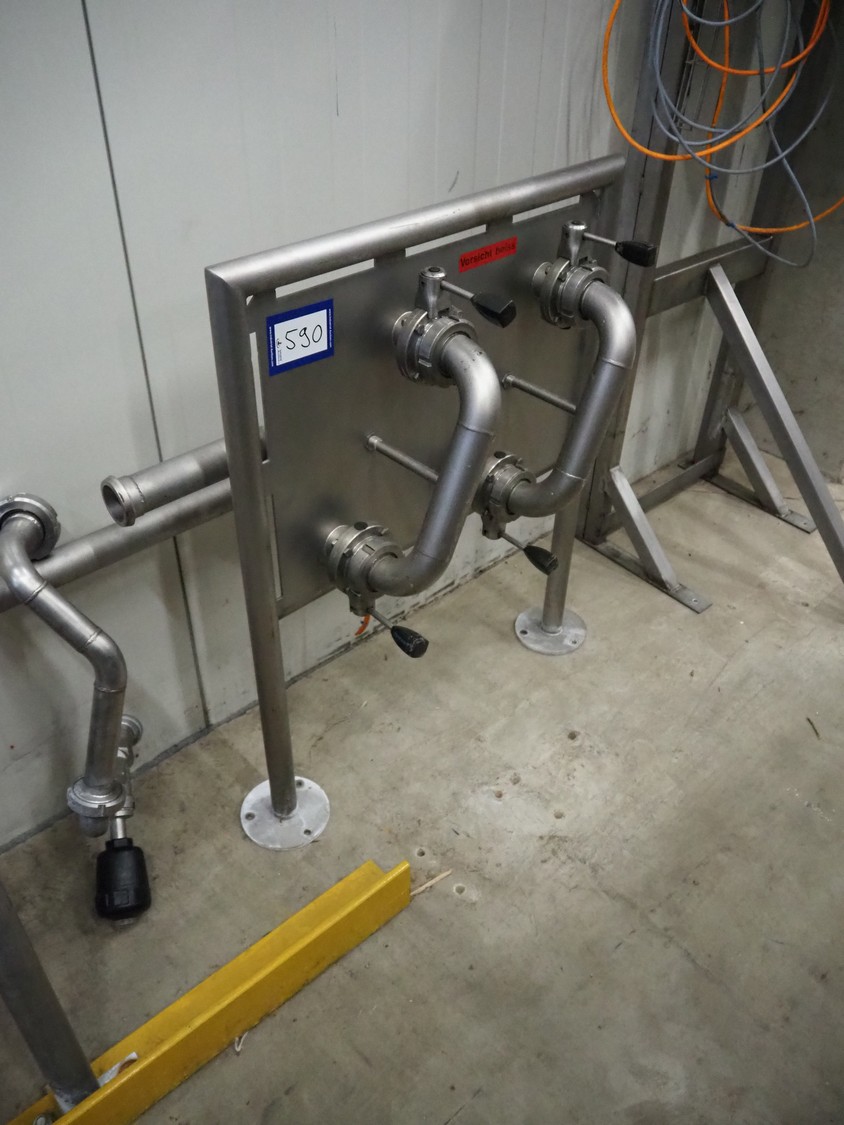 S/s flowplate for CIP with 2 valves, dimensions: 750 mm x 400 mm x 950 mm.