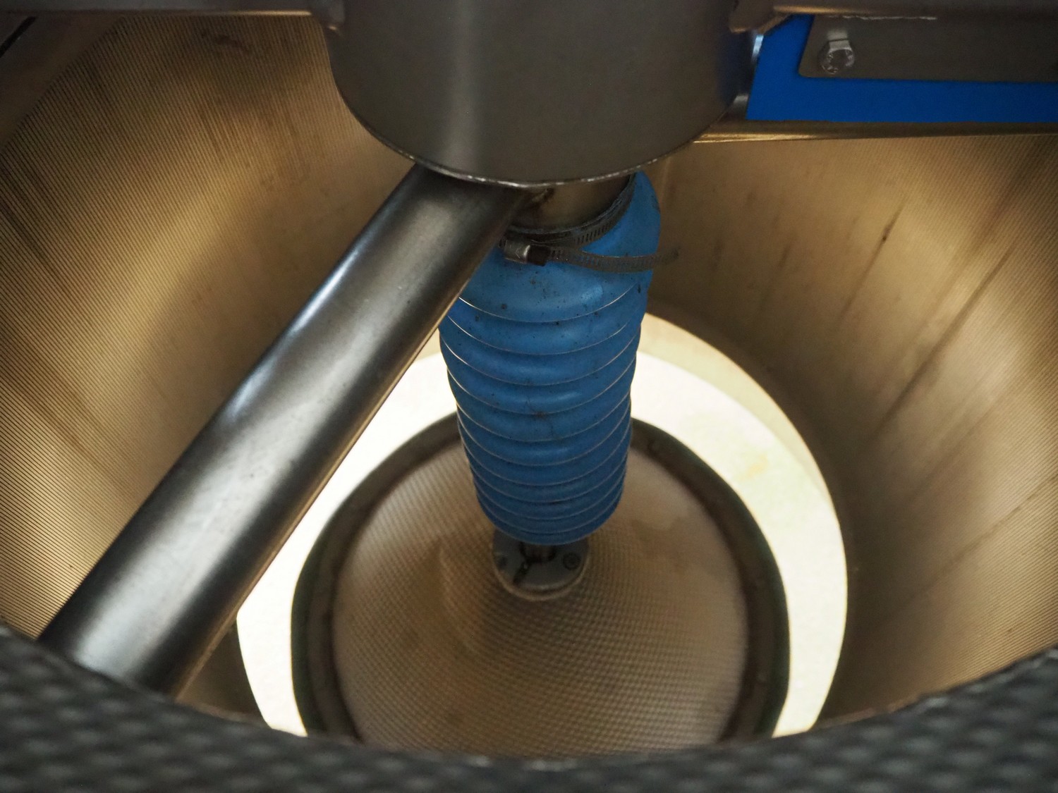 Feltracon centrifuge, model: FE-500, number: FE-18-11, year of construction: 18/06/2011, 400 V, 3 Ph, 50 Hz, inside dimensions: Ø 500 mm x 500 mm, total dimensions: 1800 mm x 1500 mm x 2100 mm.
