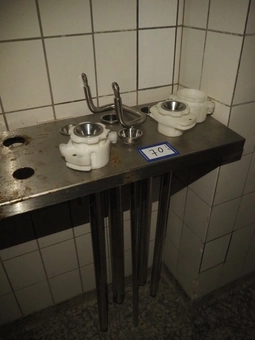Wall mounted s/s table with 7 filling pipes, dimensions table: 2330 mm x 350 mm.0 bidsLot is closed -