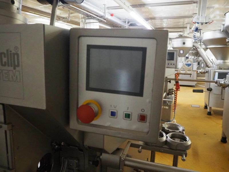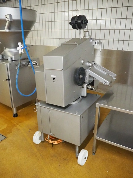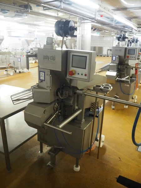 Poly-Clip System mobile double clipper, type FCA3430, dimensions: 1750 mm x 1200 mm x 1800 mm.