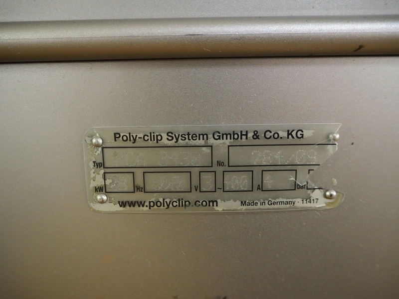Poly-Clip System mobile double clipper, type: FCA 3430, number: 784, year of construction: 2009, 400 V, 3 Ph, 50/60 Hz, 4 A, 2.8 kW, dimensions: 1750 mm x 1200 mm x 1800 mm.