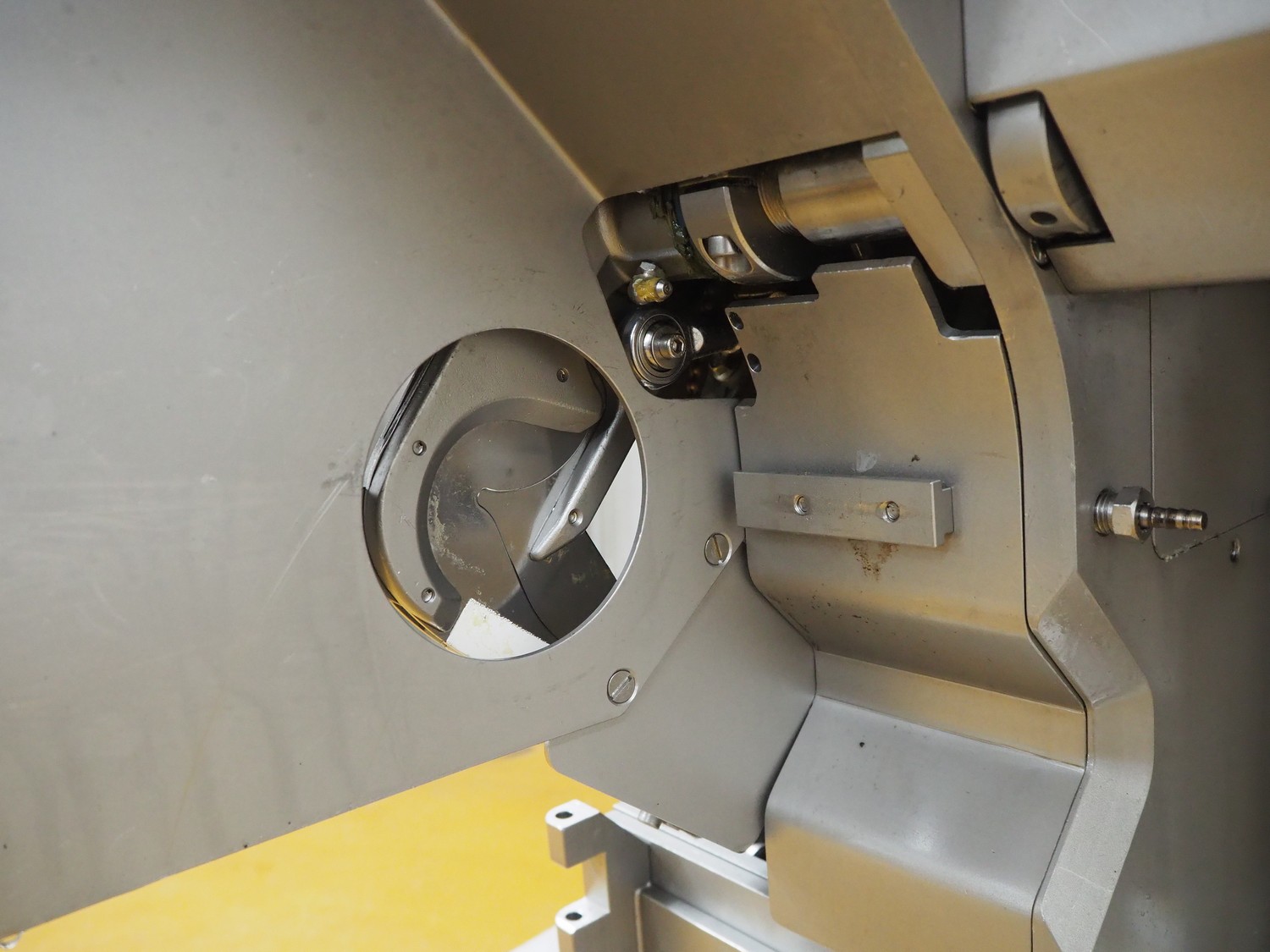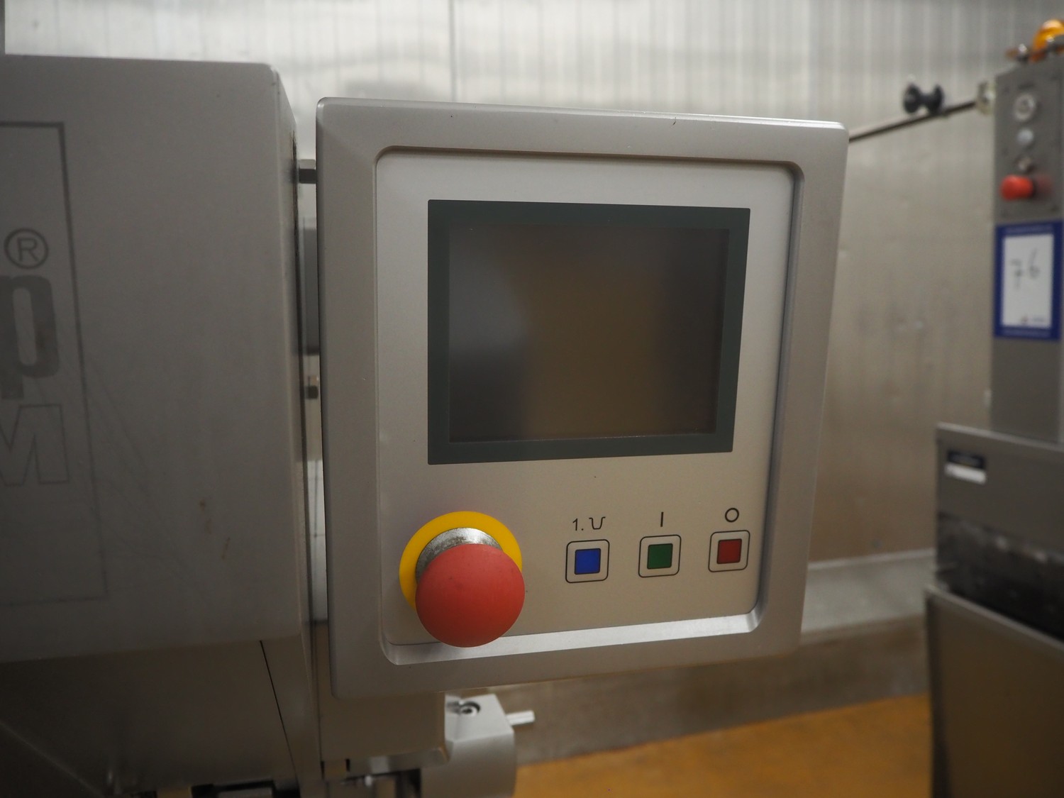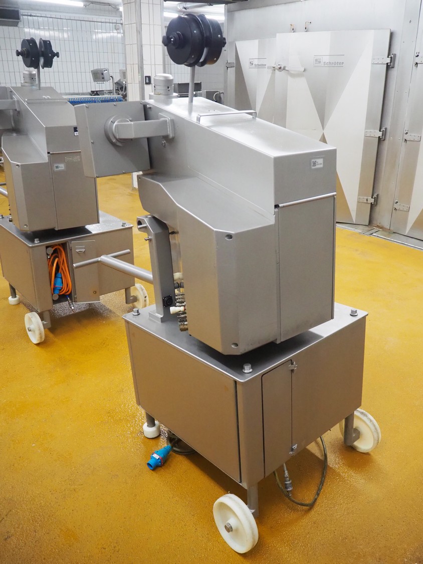 Poly-Clip System mobile double clipper, type FCA 3430, dimensions: 1250 mm x 900 mm x 1800 mm. Missing outfeed slide.