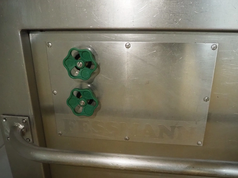 Fessmann cooking vessel, type: NOVA 8.0.9, number: 213, year of construction: 1986, 220 V, 50 Hz, 6 A, volume: 400 liter, 220 V, 50 Hz, 6 A, dimensions: 1200 mm x 1300 mm x 1100 mm.