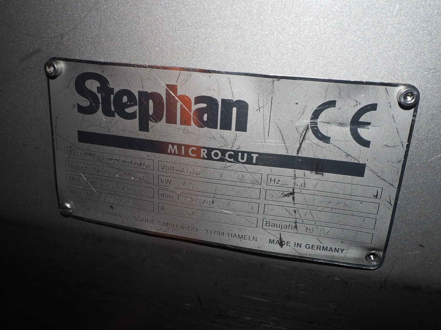 Stephan mobile microcutter, type: MCH-D40/C, machine number: 723.244.01, year of construction: 1997, 400 V, 50 Hz, 84 A, 49 kW, dimensions: 2100 mm x 1250 mm x 1300 mm.